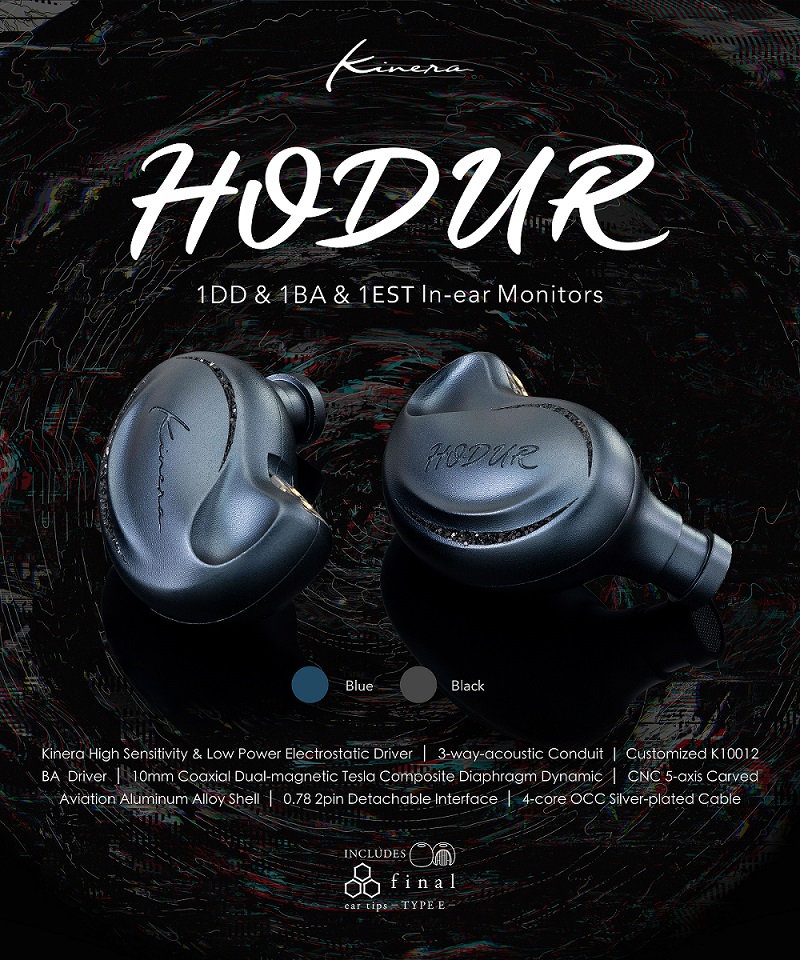 | W zestawie | • Kinera Hodur • Modułowy kabel audio • Wymienne końcówki 3,5 mm i 4,4 mm • Końcówki douszne: Final E-Series oraz Kinera Custom |