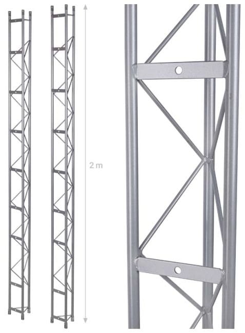 Rampa oświetleniowa Stand4Me składa się z dwóch 2-metrowych odcinków w układzie tri-system oraz dwóch podpór do zamontowania trawersu. Dzięki specjalnym złączom montażowym obie kratownice szybko i wygodnie łączy się w jeden 4-metrowy odcinek. Podpory posiadają regulację rozstawu uchwytów, co pozwala na ich łatwe dopasowanie do szerokości kratownicy. Połączony trawers udostępnia ✅ 16 punktów do montażu oświetlenia (wyłączając punkty zewnętrzne na wysokości podpór).