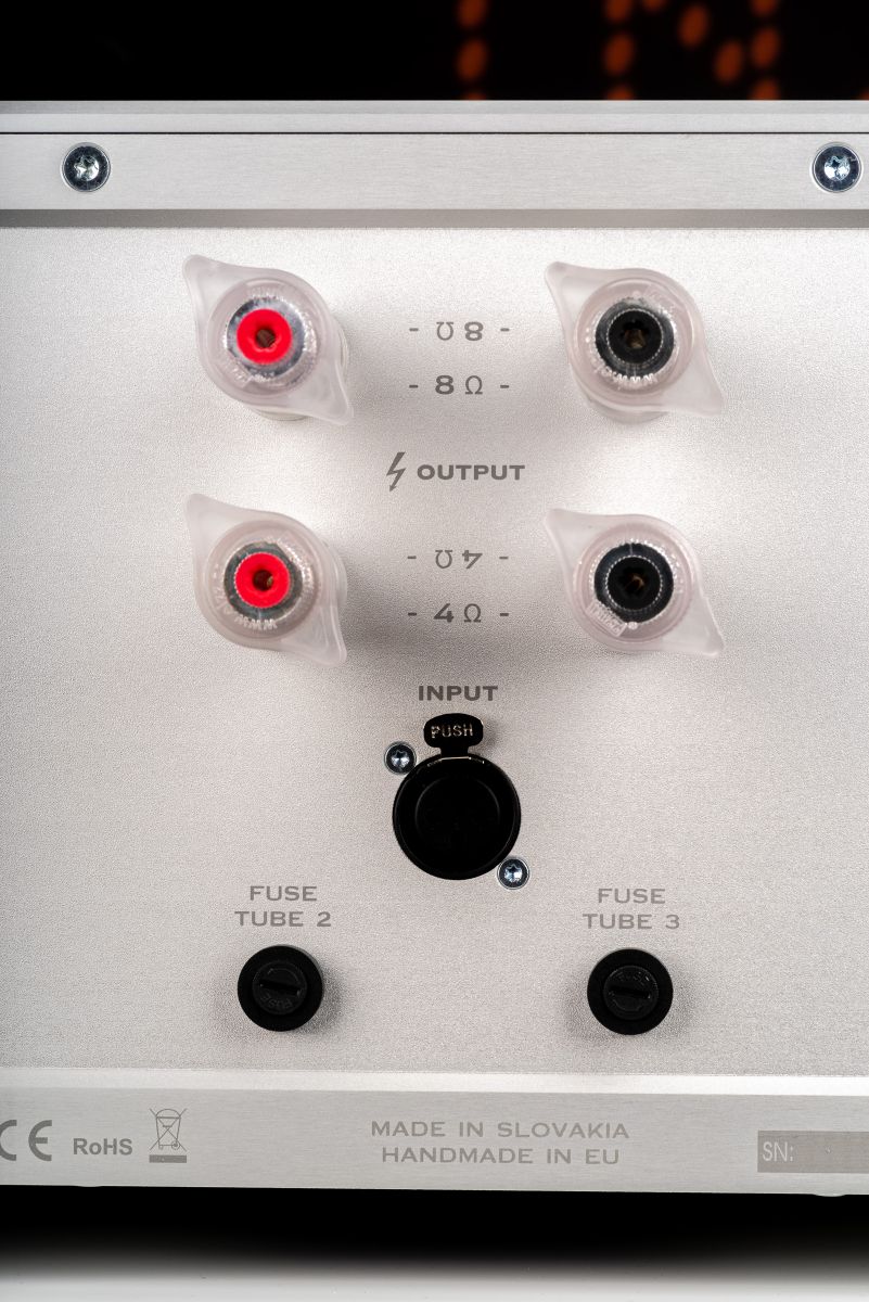 | Moc ciągła (RMS) | 1x 110 W / 8 Ω – ultra liniowy (THD < 3%) 1x 55 W / 4,8 Ω – triodowy (THD < 3%) |