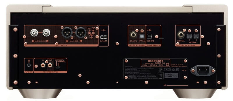 Wzornictwo przemysłowe Marantz: dzięki powierzchni sterującej ze szczotkowanego aluminium, detalom wykończeniowym, aluminiowej konstrukcji o grubym przekroju, miedziowanej, trójwarstwowej obudowie, SACD 10 jest klasą samą w sobie. Dostępny w dwóch wersjach kolorystycznych, Marantz Black i Marantz Champagne, aby uzupełnić każde otoczenie.