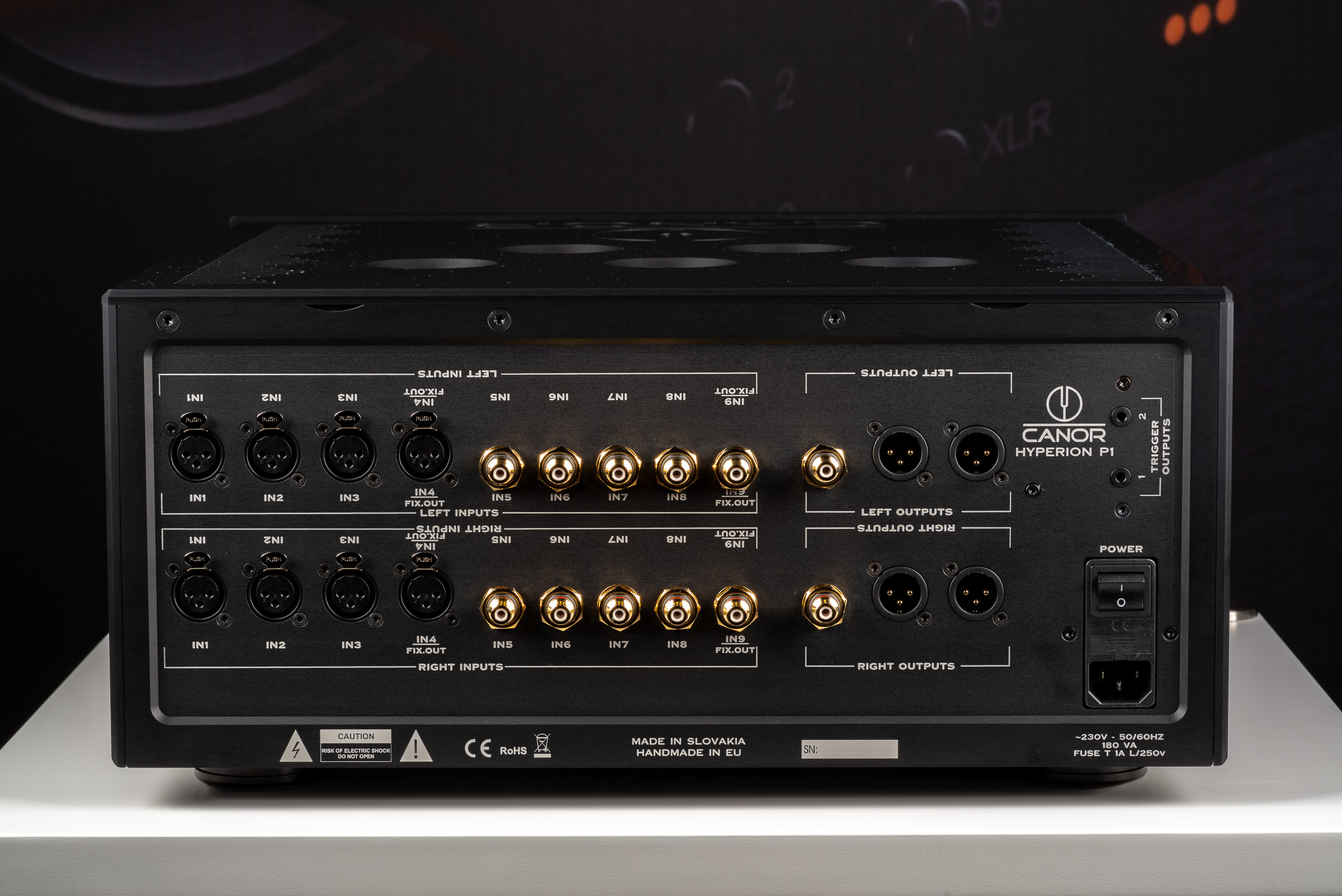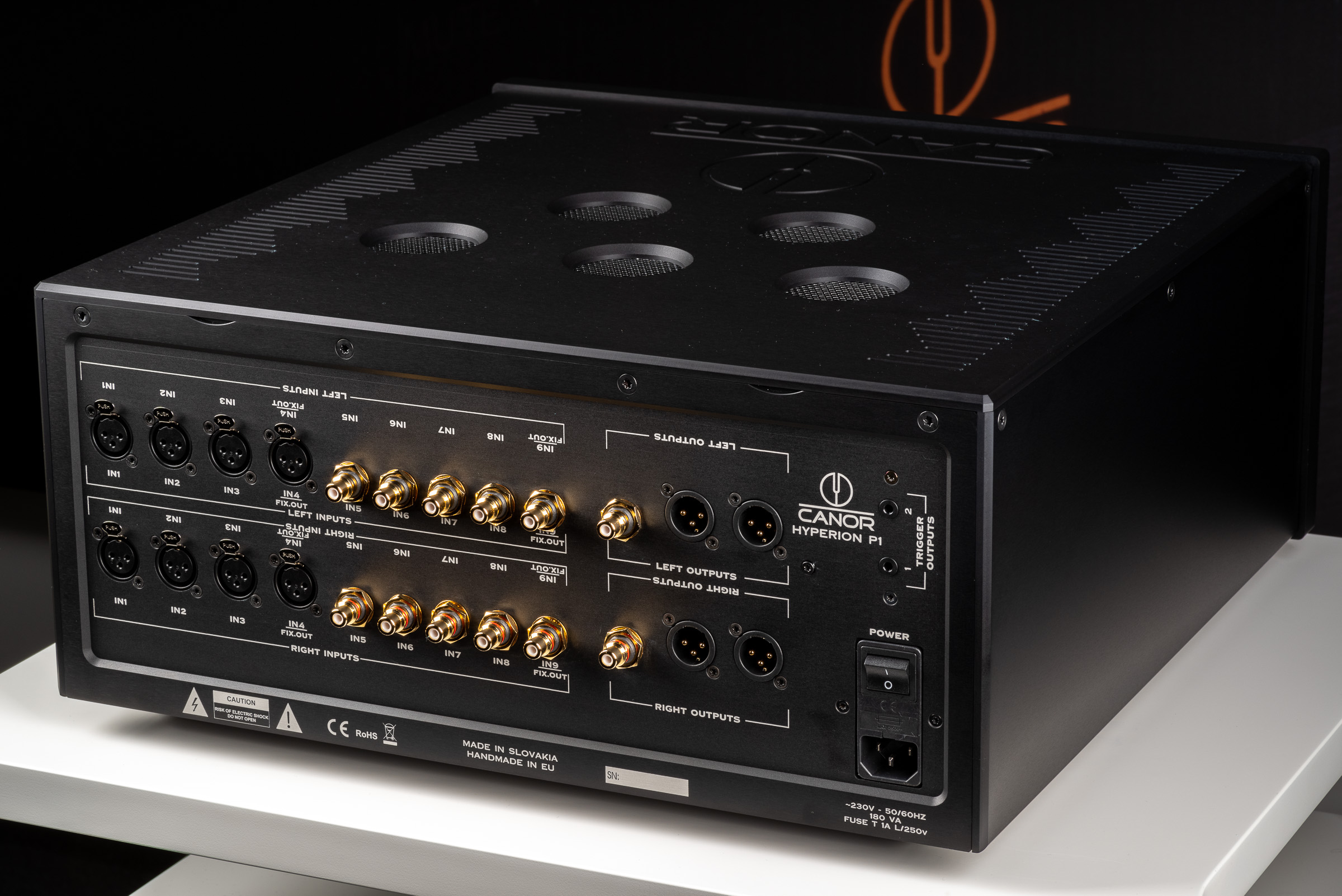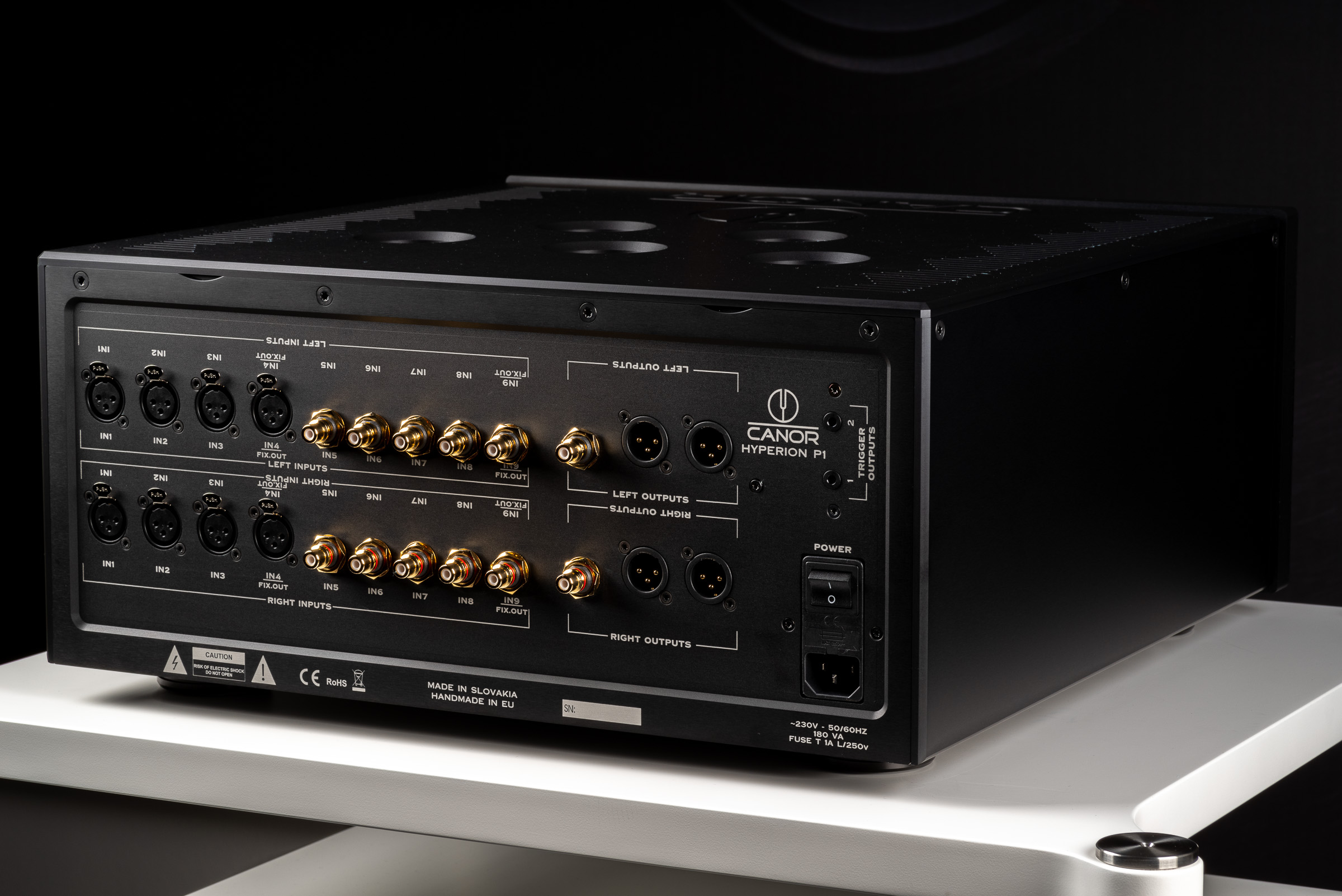 Hyperion P1 to zupełnie nowy, flagowy przedwzmacniacz lampowy w czystej klasie A z zerowym sprzężeniem zwrotnym, zaprojektowany i wyprodukowany w słowackiej fabryce Canor, jednej z najnowocześniejszych na świecie. Hyperion P1, referencyjny przedwzmacniacz marki CANOR Audio, został wyposażony w sześć lamp: 4x 6922 oraz 2x 6H30PI. Są to lampy o ponadprzeciętnych parametrach, które zostały dobrane po dokładnej, pieczołowitej selekcji, poprzedzonej 200-godzinnym wygrzaniem.