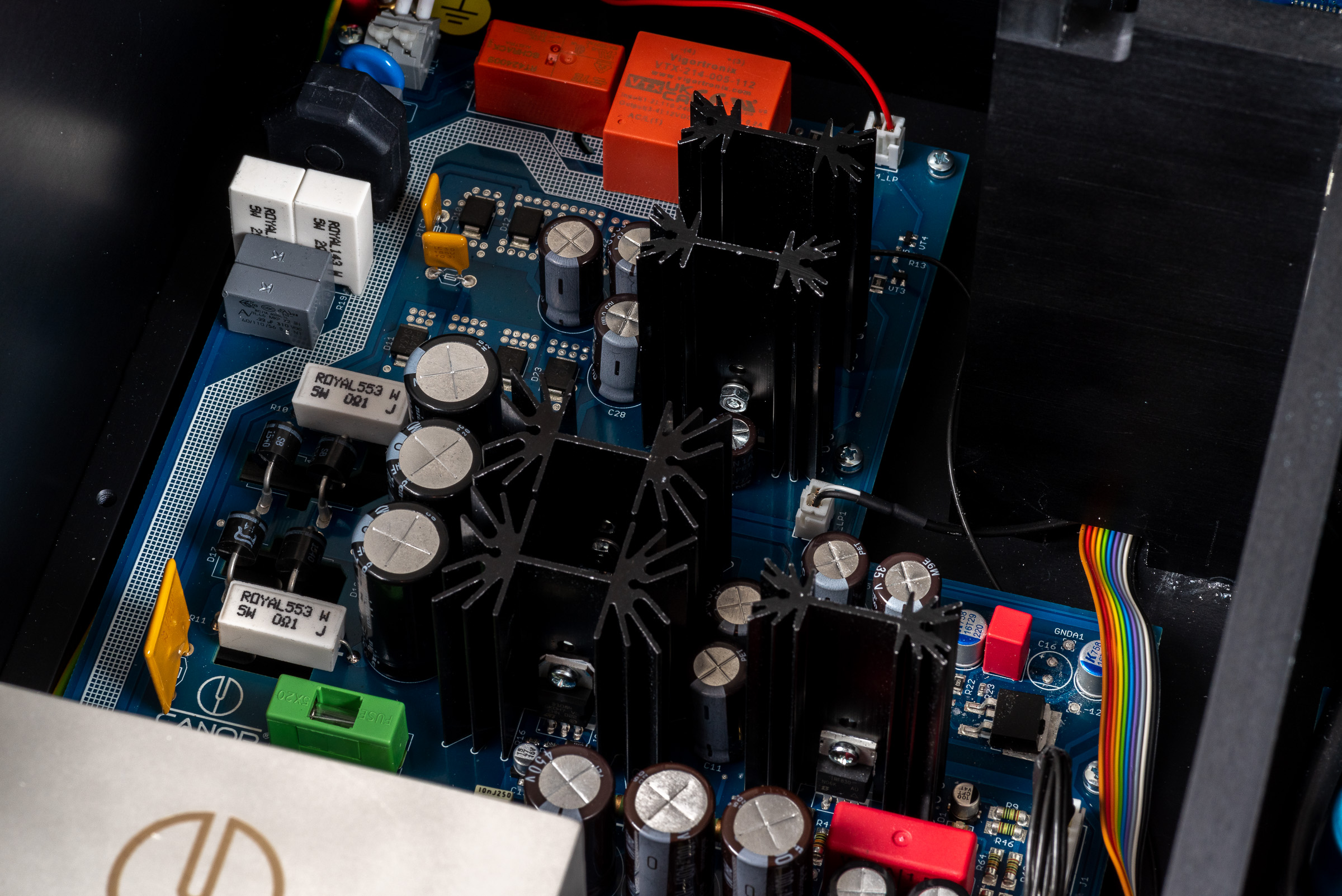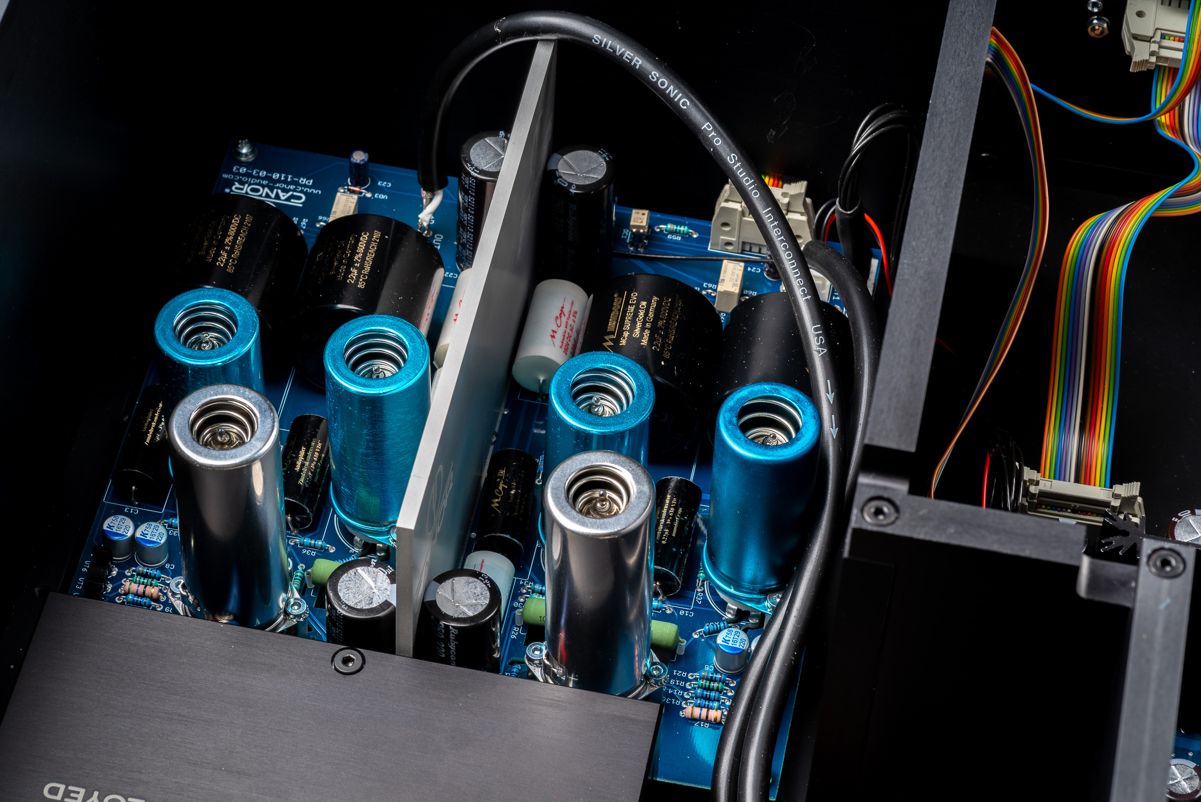 - Część analogowa jest oddzielona od części zasilającej solidną aluminiową ścianką (grubość 10 mm), co przyczynia się do eliminacji zakłóceń