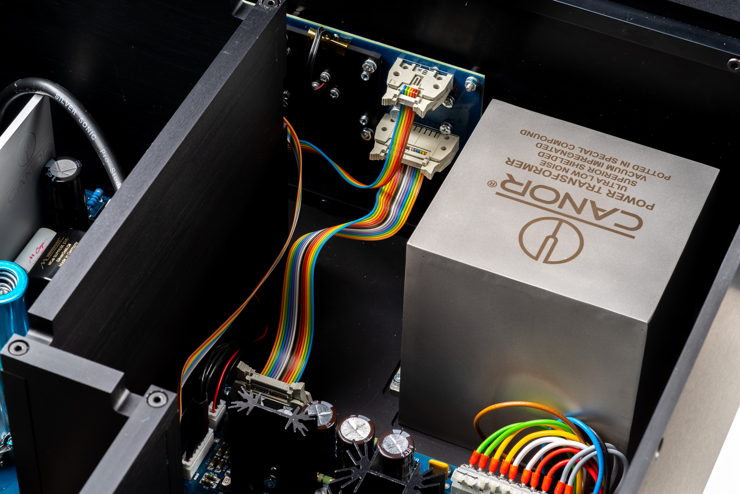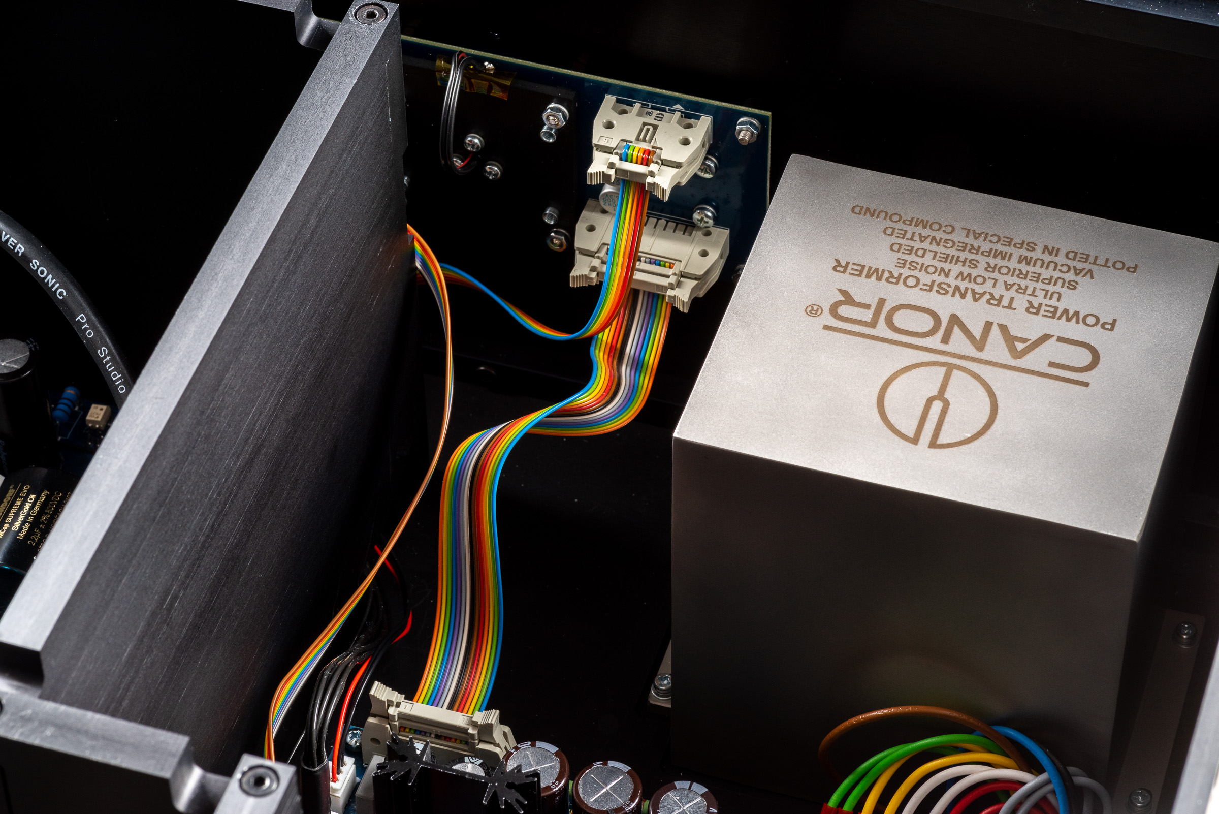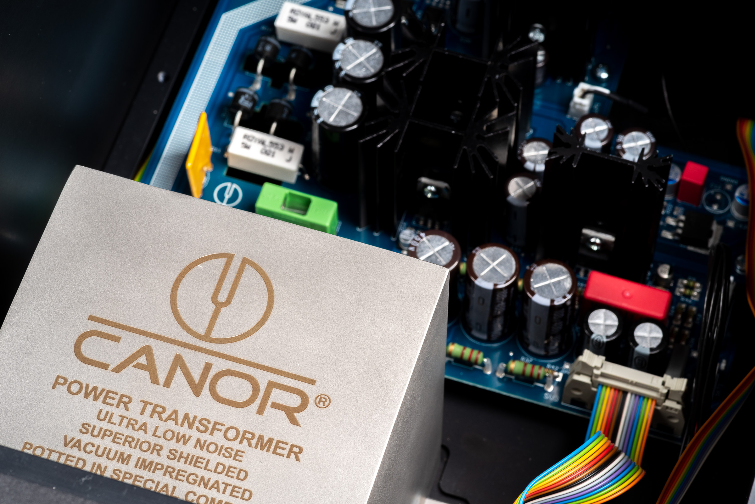 W celu wyeliminowania mechanicznych zakłóceń pochodzących od transformatora jego rdzeń został impregnowany próżniowo i zatopiony w całości w specjalnej mieszance antywibracyjnej. Ponadto masywna, spawa osłona tworzy skuteczne ekranowanie elektromagnetyczne i znacząco przyczynia się do uzyskania doskonałej odległości sygnału od wszelkich zakłóceń pochodzących z zasilania. Uzwojenia pierwotne i wtórne są oddzielone ekranującą folią miedzianą z zakładką 50%, co zapobiega przenikaniu napięć zakłócających z sieci.