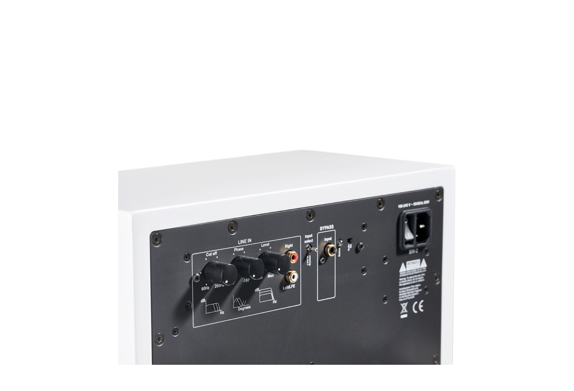 BW-2 posiada dwa wejścia liniowe. Jeśli wybierzemy ustawienie "Line In", możemy używać BW-2 w systemach stereo lub kina domowego ze wzmacniaczami z wyjściem LFE, SUB lub PREOUT, procesorami czy amplitunerami AV w zakresie częstotliwości od 25 do 200 Hz. Podobnie jak w przypadku klasycznych subwooferów, na tylnym panelu mamy bezpośredni dostęp do regulacji głośności, zakresu częstotliwości oraz odwrócenia fazy.