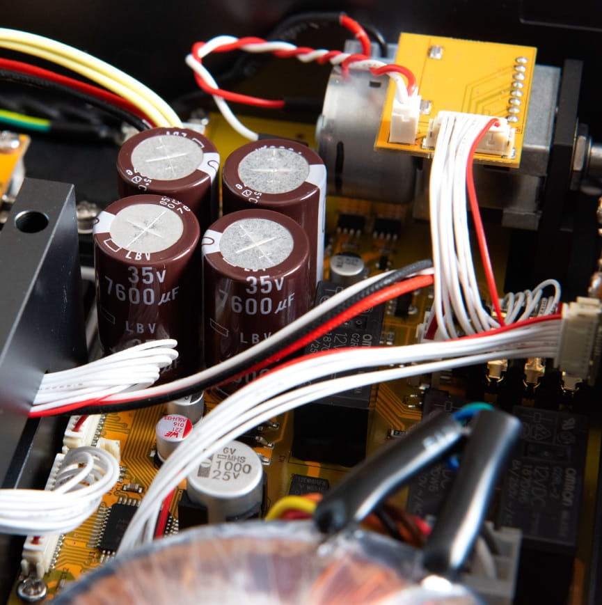 AMP-23R wykorzystuje ten sam transformator co AMP-13R, jednak stosuje całkowicie nową konstrukcje obwodu zasilania, aby zapewnić wyższy prąd i niższy poziom szumów. Teraz z nową architekturą oprogramowania, pojedynczy MPU kontroluje wszystkie funkcje i obwody AMP-23R, co skutkuje znacząco zmniejszoną liczbą części oraz poprawą wydajności wszystkich obwodów. Co więcej, sekcje obwodów cyfrowych i analogowych są teraz w pełni odizolowane od siebie, aby zminimalizować zakłócenia i aby każda sekcja mogła działać w najlepszym stanie.