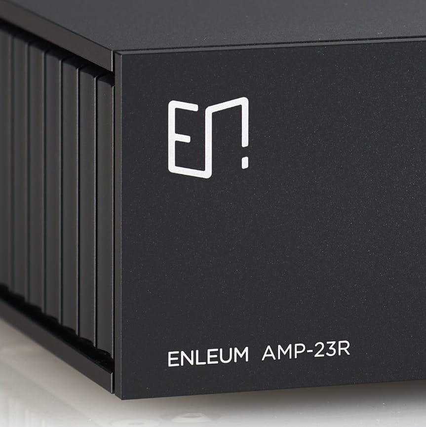 Konstrukcja AMP-23R cechuje się przejrzystością oraz intuicyjnością. Metalowa powierzchnia obudowy wzmacniacza została precyzyjnie wykończona, aby być miła w dotyku. Wszelkie funkcje są kontrolowane za pomocą pojedynczego przycisku oraz ergonomicznego pokrętła głośności. Piękny design urządzenia rozpościera się na całym panelu przednim aż do bocznych radiatorów, tworząc oryginalną tożsamość projektową Enleum. Projekt produktu został dopracowany do perfekcji nawet w strukturze wewnętrznej, a każdy element precyzyjnie połączony, aby stanowić spójną, przemyślaną całość.