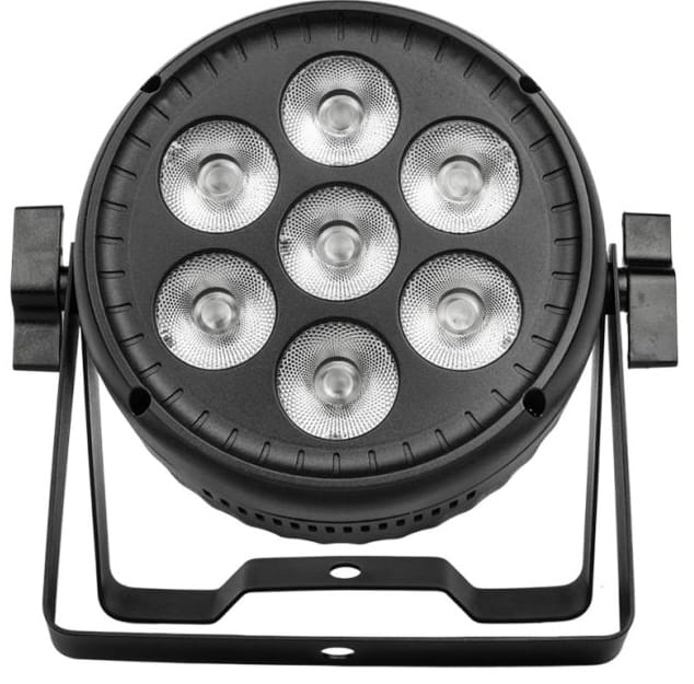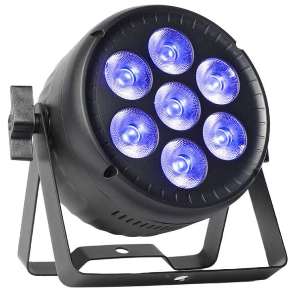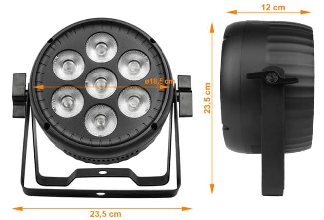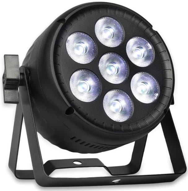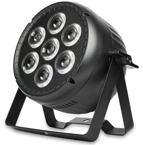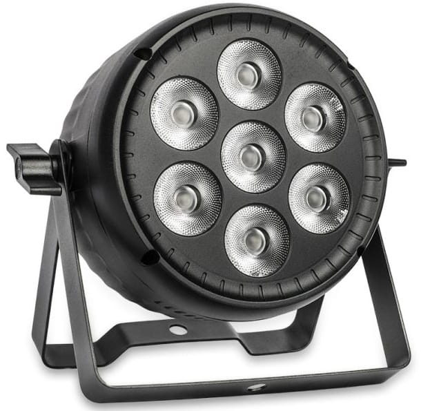 - kompaktowy reflektor typu LED PAR wyposażony w 7 bardzo wydajnych, 30-watowych diod obsługujących paletę barw RGBW