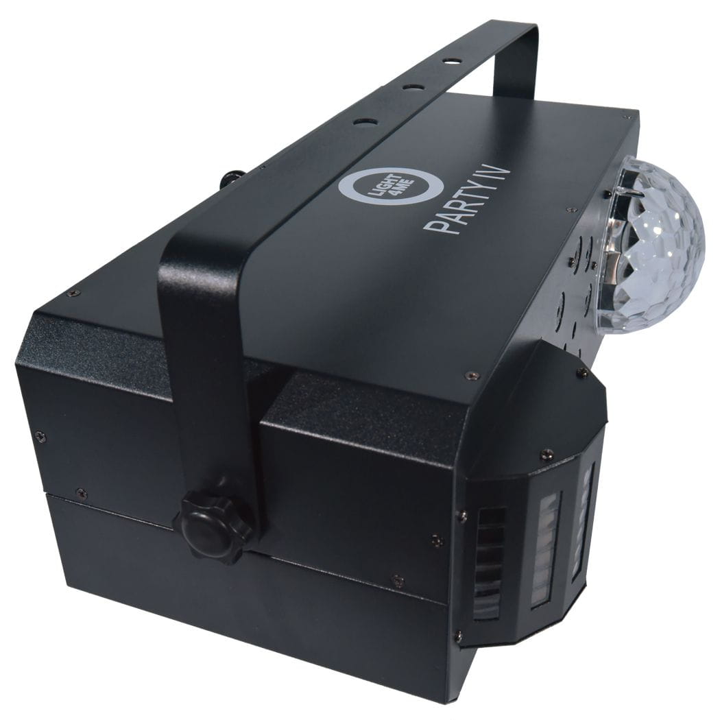 Light4Me Party IV to oświetlenie efektowe, które rewelacyjnie sprawdza się w mobilnej pracy DJ-ów, na parkietach dyskotek, w klubach tanecznych, a także na prywatkach i wszelkiego rodzaju imprezach okolicznościowych. Jest solidne, lekkie i bardzo łatwe w obsłudze, a emitowane przez urządzenie wiązki są w stanie pokryć sporą powierzchnię nawet z niewielkiej wysokości. Zastanawiając się jakie światło efektowe wybrać, na pewno warto zwrócić uwagę na ten reflektor.