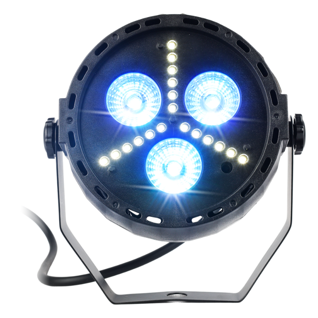 LIGHT4ME TRI PAR STROBE to profesjonalny reflektor par, który jest doskonałym rozwiązaniem dla każdego, kto chce podnieść poziom swoich imprez dzięki zaawansowanemu oświetleniu. Dzięki trzem 3-watowym diodom LED RGB oraz osiemnastu 0,2-watowym białym diodom LED SMD 2835, reflektor ten oferuje intensywne i dynamiczne efekty świetlne ✅. Pełnozakresowy dimmer pozwala na precyzyjne dostosowanie jasności, co sprawia, że urządzenie doskonale sprawdzi się w różrodnych warunkach oświetleniowych. Wąski kąt świecenia zapewnia wyraźność i skupienie światła. LIGHT4ME TRI PAR STROBE jest idealny na parkiety taneczne, sceny i sale bankietowe.
