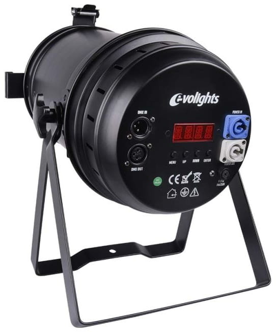 Evolights PAR 64 200W LED Zoom Auto to profesjonalny reflektor punktowy LED. Elektronicznie sterowana zmienna ogniskowa, umożliwiająca tworzenie plamy świetlnej o różnej wielkości, możliwość stosowania kolorowych filtrów, 200 watów mocy oraz kontrola za pomocą sygnałów DMX i stroboskop działająca w trybie Sound tworzą z tego ledowego para doskonały reflektor teatralny, który z powodzeniem może być również stosowany w studiach telewizyjnych (brak migotania w kamerze) oraz różnego typu instalacjach oświetleniowych.