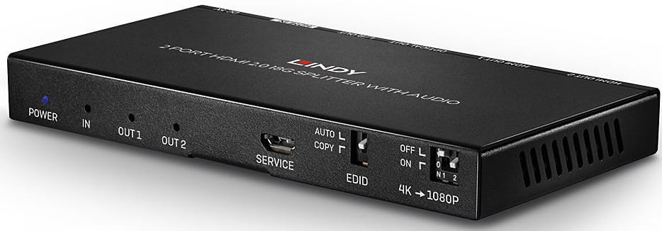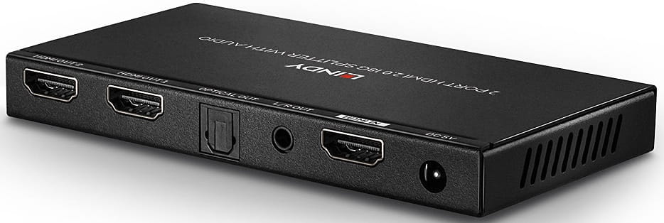 Rozdzielacz (przejściówka, spiltter) HDMI 4K UHD 2-portowy z audio, portem optycznym i analogowym - Lindy 38230
