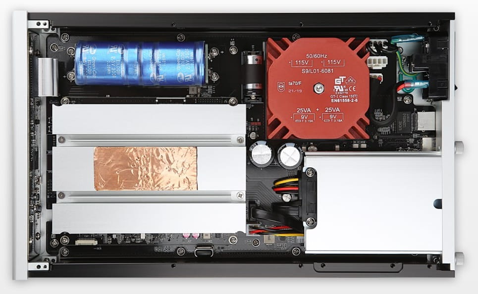 Wpełni liniowy zasilacz modelu N150 zapewnia czyste i stabilne zasilanie procesora i obwodów wyjściowych audio. Zasilacze liniowe są znane ze swojej zdolności do zapewniania szerokiego zakresu dynamiki, głębokiego i potężnego pasma przenoszenia niskich częstotliwości oraz szerokiej i głębokiej sceny dźwiękowej. Dodatkowo najczęściej nie zakłócają one pozostałych komponentów systemu audio w takim stopniu jak to często bywa w przypadku zasilaczy impulsowych.