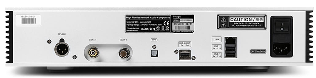 Aurender N10 został zaprojektowany, aby współpracować z wysokiej jakości konwerterami cyfrowo-analogowymi i w tym celu urządzenie otrzymało różne rodzaje wyjść SPDIF (BNC, AES/EBU, koaksjalne i optyczne), a także dedykowane wyjście USB Audio Class 2.0. W celu połączenia z siecią i transferu plików, N10 posiada port Gigabyte Ethernet i dwa porty USB 2.0 do odczytu danych.