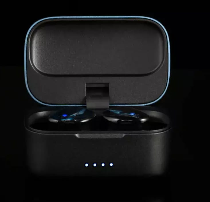Żywotność baterii to oczekiwane 7,5 godziny przy 50% głośności. Designerskie metalowe etui ładujące zawiera również baterię 500 mAh, która zapewnia 4 dodatkowe ładowania.