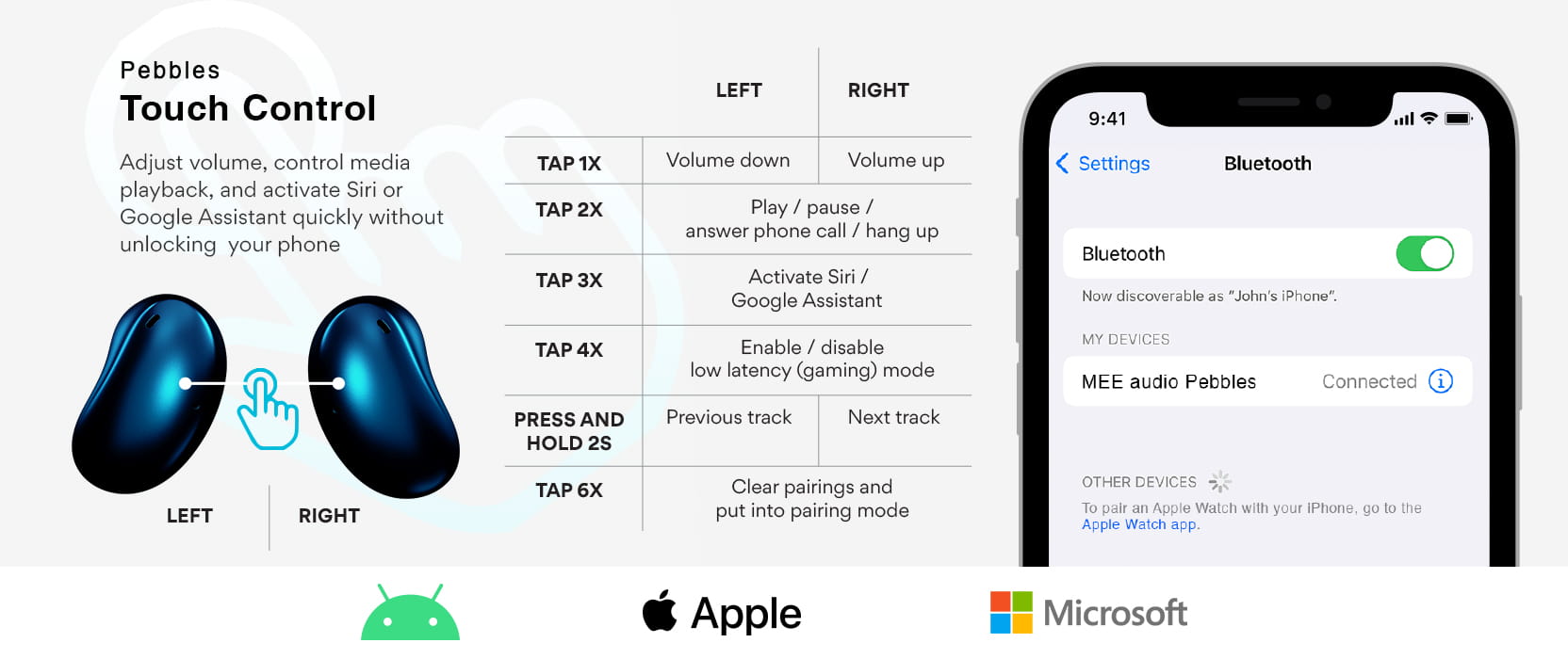 Nieblokująca dopływu powietrza konstrukcja Pebbles nie „korkuje” ucha i niweluje potrzebę zakładania na słuchawki gumek dokanałowych. Zapewnia to uczucie braku całkowitego „odcięcia” od świata, tak jak jest to w słuchawkach dokanałowych. Słuchawki Pebbles zachowują się bardziej jak słuchawki douszne. Klasa wodoodporności IPX4 gwarantuje ochronę przed potem i warunkami atmosferycznymi. Dzięki temu Pebbles to gratka dla wszystkich tych, którzy podczas codziennych czynności nie chcą rozstawać się z ulubioną muzyką.