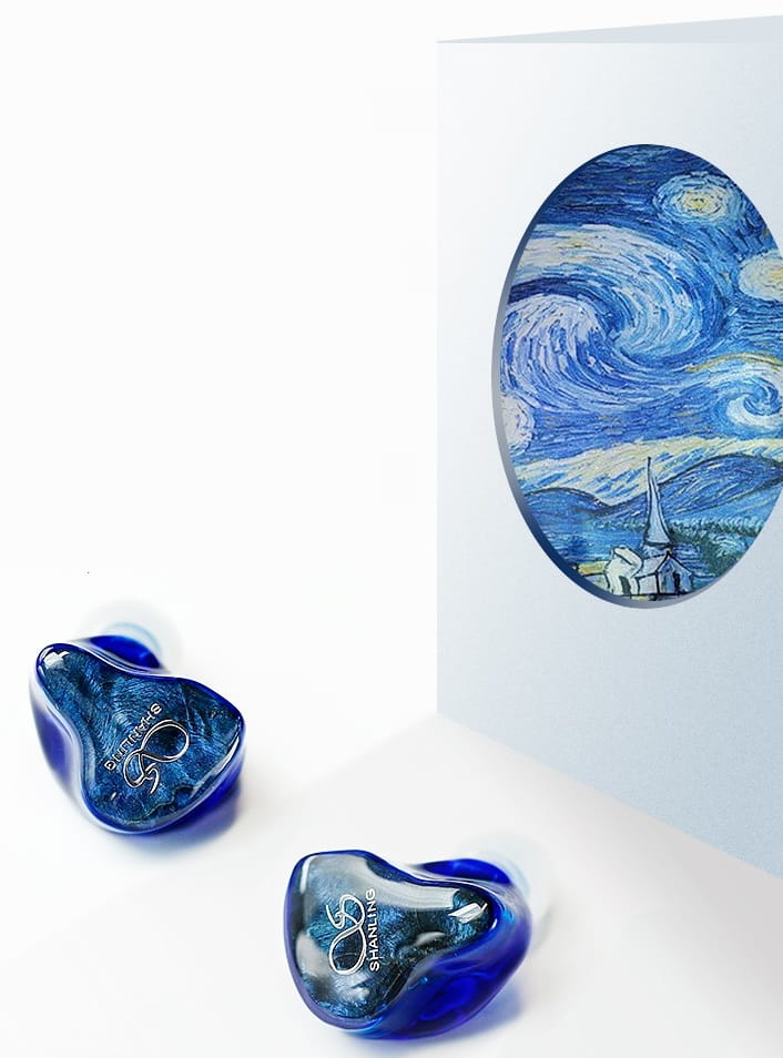 Shanling AE3 to słuchawki dokanałowe, które przykuwają wzrok za sprawą pięknych przednich paneli. Wykonane są one ze starannie wyselekcjonowanych kawałków stabilizowanego drewna, które wyglądem nawiązują do obrazu olejnego “Gwiaździsta noc” (“The Starry Night”) Vincenta van Gogha. Specjalny proces konserwacji drewna stabilizowanego umożliwił osiągnięcie stylowych wzorów, które są połączeniem nietypowych kształtów i kolorów. Dzięki temu każdy przedni panel AE3 jest unikatowy i niepowtarzalny.
