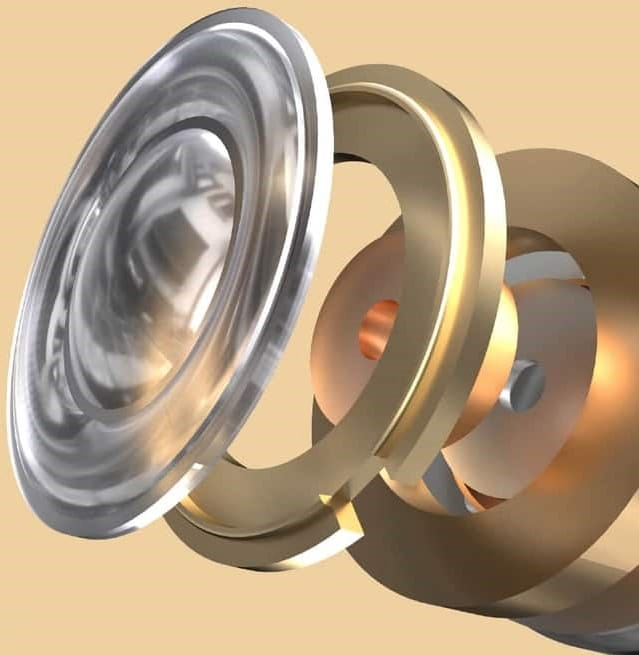 Kompozytowy zespół dynamiczny z podwójnym obwodem magnetycznym, wyposażony w membranę sprężynową 10mm PEK