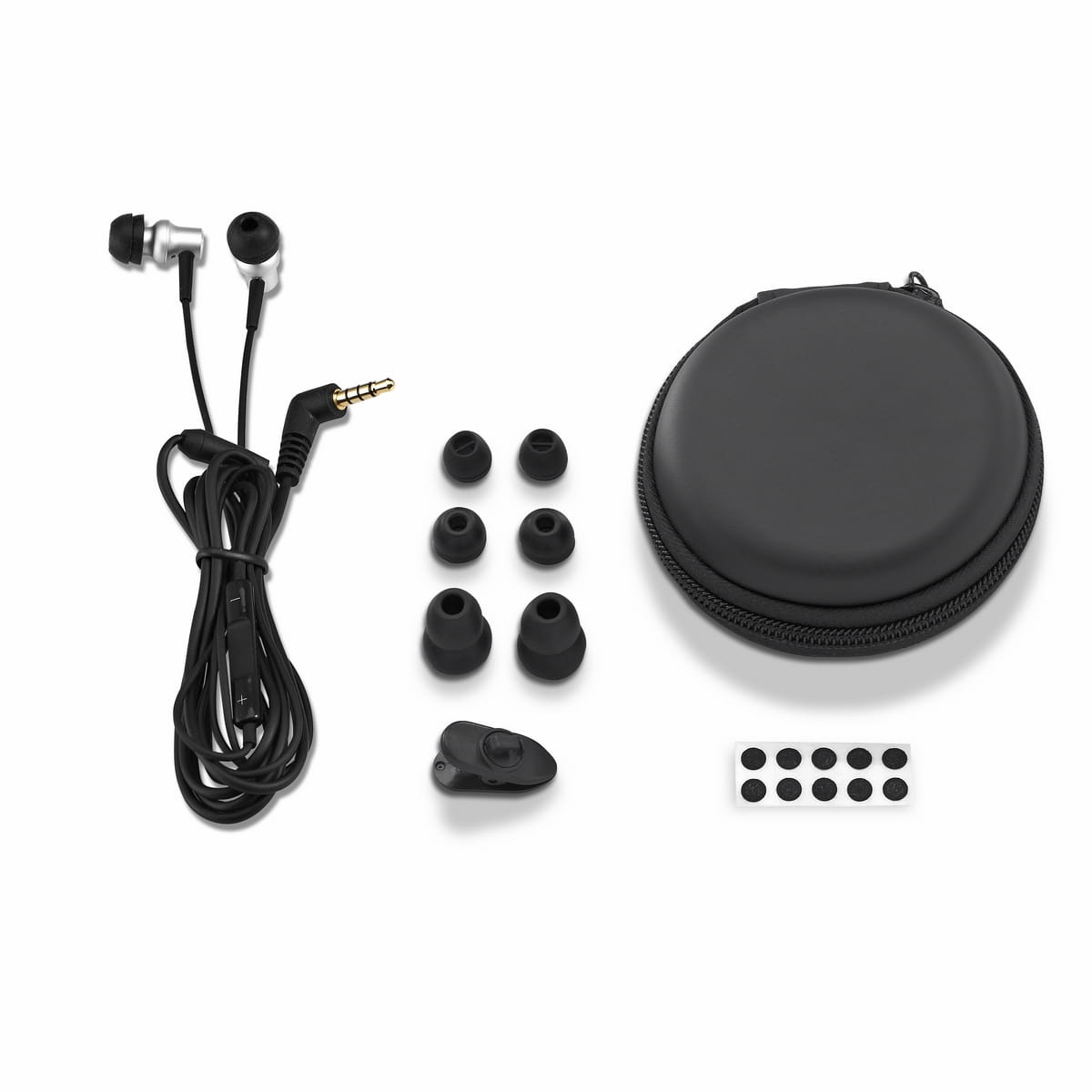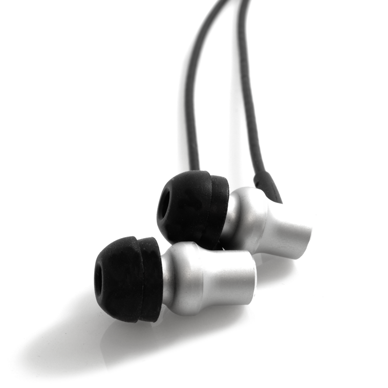Słuchawki są małe i kompaktowe - typowe monitory dokanałowe, obudowa w kolorze srebrnego matu.