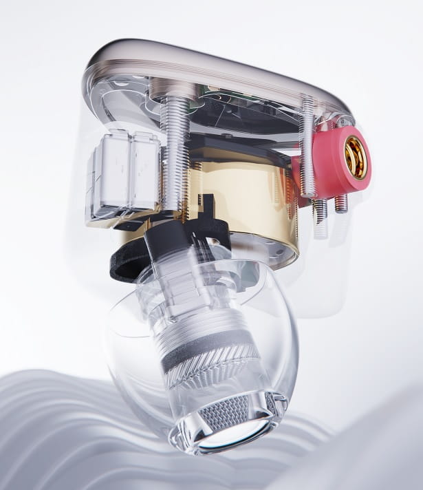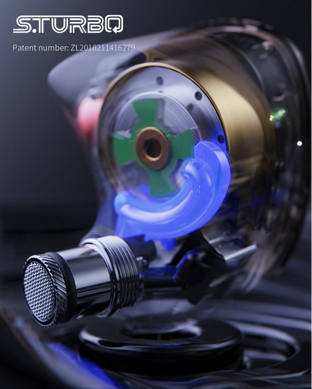 Zainspirowany turbosprężarkami stosowanymi w supersamochodach, zespół deweloperski FIIO skrupulatnie stworzył opatentowaną konstrukcję akustyczną S.Turbo. Ta konstrukcja pomysłowo wykorzystuje właściwości prowadzenia fal dźwiękowych, zwiększając wydajność basów poprzez strukturę w kształcie turbiny. Rezultatem jest głęboki i żywiołowy bas. Ponadto konstrukcja sprytnie filtruje nadmiar średnich i wysokich częstotliwości z dynamicznego przetwornika, zapewniając płynne przejścia między niskimi i średnio-wysokimi częstotliwościami. Rezultatem jest mocniejszy i solidniejszy dźwięk.