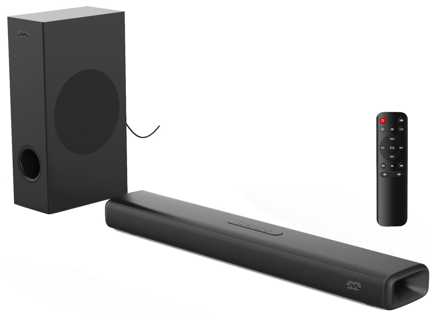 | Waga | Soundbar: 1,9 kg, subwoofer: 3 kg. |