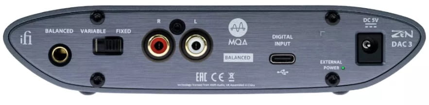 Urządzenia marki iFi Audio znane są z tego, że pod względem funkcjonalności nie mają sobie równych. Nie inaczej jest i w tym przypadku – ZEN DAC 3 posiada nie tylko zbalansowane i niezbalansowane wyjścia liniowe, ale ma też dwa wyjścia słuchawkowe. W tym ostatnim przypadku znajdziemy niezbalansowane gniazdo 6.35 mm oraz zbalansowane wyjście oparte na niezwykle popularnym ostatnio standardzie 4.4 mm. Co więcej, ZEN DAC 3 daje nam możliwość wyboru trybu pracy wyjść liniowych, bo mogą one pracować jako regulowane lub o stałym poziomie. A to sprawia, że do najnowszego przetwornika możemy podłączyć nie tylko wzmacniacz stacjonarny z własną regulacją głośności, ale też – przykładowo – kolumny aktywne i sterować ich poziomem za pomocą wygodnego pokrętła umieszczonego z przodu.