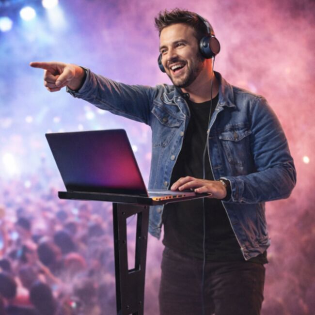 DNA PODIUM to statyw DJ - pulpit pod laptop i kontroler dla osób, które chcą pracować wygodniej, stabilniej i bez chaosu na stanowisku. Świetnie sprawdzi się na weselu, w klubie, na evencie firmowym, w sali bankietowej i podczas setów mobilnych, wszędzie tam, gdzie liczy się szybki montaż i dobrze zorganizowana przestrzeń. Dzięki stalowej konstrukcji, wysokości 108 cm i platformie roboczej 50 x 39 cm możesz ustawić sprzęt na wygodnym poziomie i zyskać lepszy dostęp do laptopa lub kontrolera ✨ Gdy grasz wesele i musisz zmieścić się obok kolumn, oświetlenia oraz stołu, taki pulpit pomaga utrzymać porządek i pracować swobodnie przez cały wieczór.