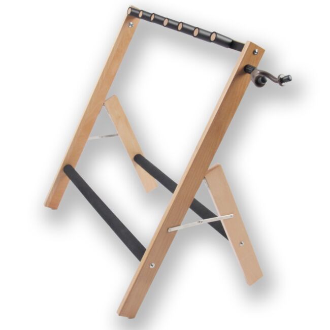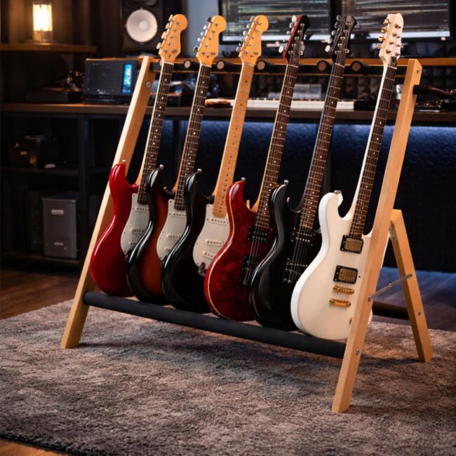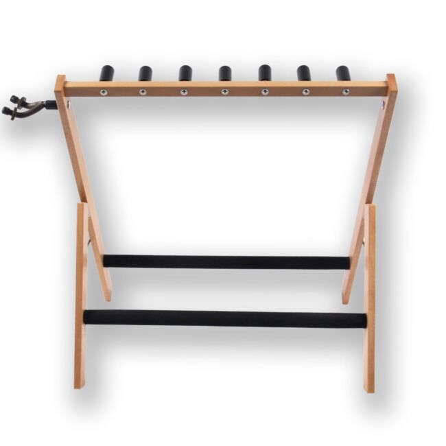 Bukowa konstrukcja nadaje stojakowi estetyczny, uporządkowany wygląd i dobrze komponuje się z instrumentami w studio, pokoju muzycznym czy sali ćwiczeń ✨ Naturalne wykończenie drewna prezentuje się znacznie cieplej niż typowe metalowe konstrukcje, a jednocześnie całość zachowuje stabilność dzięki metalowym rozpórkom i przemyślanemu układowi podpór. To dobry wybór dla osób, które chcą nie tylko przechowywać gitary, ale też ustawić je w sposób schludny i wygodny na co dzień.