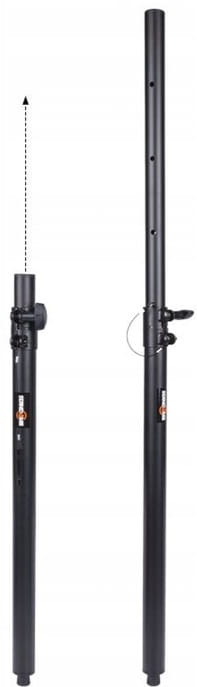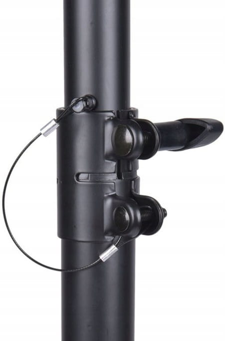 Dystans wyposażono w pin bezpieczeństwa, standardowy gwint M20 oraz specjalną sprężynę amortyzującą przypadkowe osunięcie się sztycy. Łącznik może być stosowany do kolumn o wadze do 50 kg.