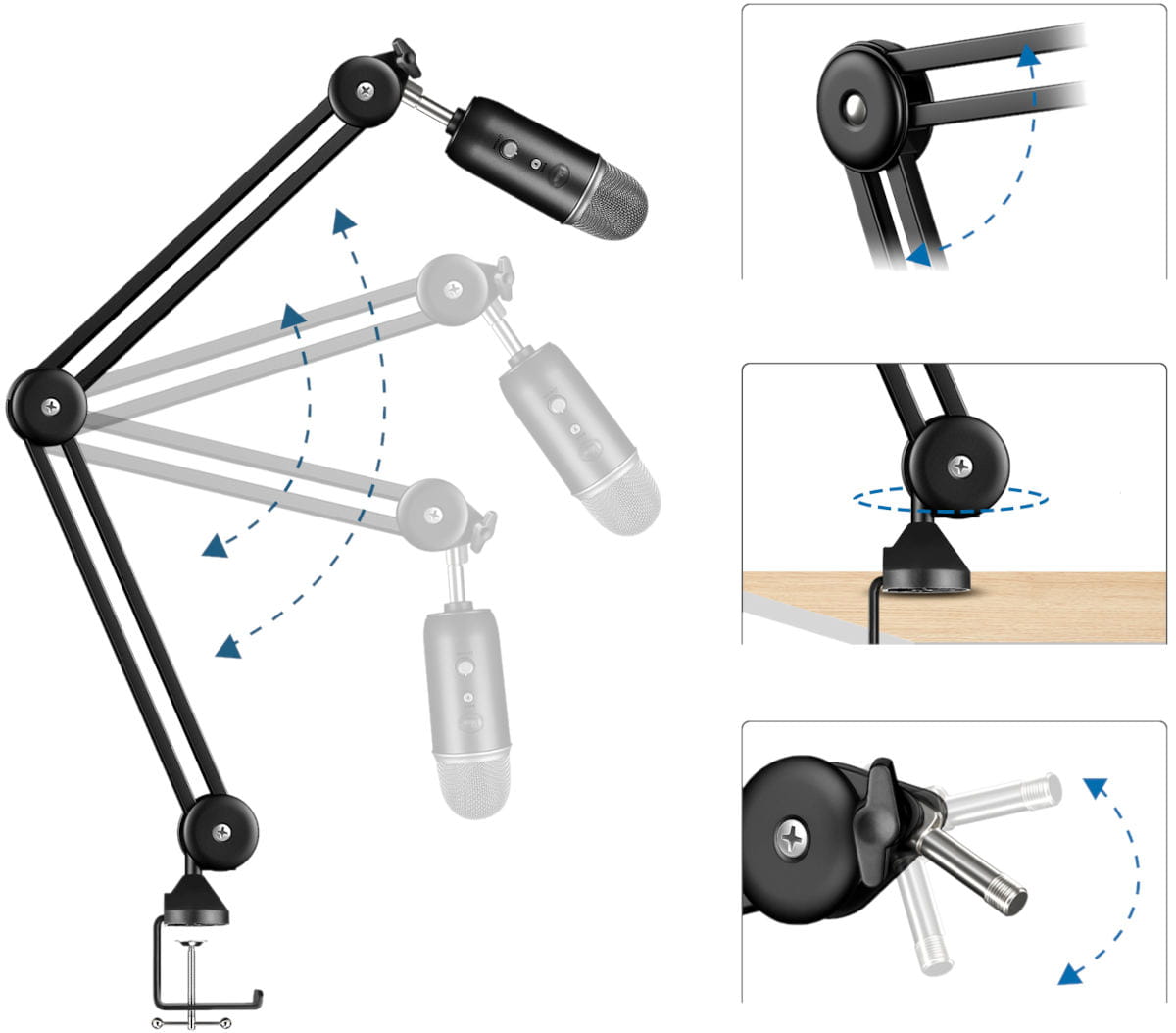Produkt najwyższej jakości za ułamek ceny konkurencji to właśnie MOZOS SB36. Produkt projektowany z myślą o mikrofonach studyjnych o udźwigu do 1.2 kg. Bez problemu podoła takim urządzeniom jak Blue Yeti, Snowball, Novox NC-x, Samson G-track, Fifine, Mozos i wiele innych. Uchwyt biurkowy SB36 to projekt który wielu użytkownikom może się kojarzyć z o wiele droższymi rozwiązaniami. Trudno uwierzyć, że w tej cenie otrzymujemy produkt o takim stopniu stabilności i jakości wykonania. Z łatwością można podpiąć do statywu najpopularniejsze mikrofony dostępne na rynku. W statywie znajduje się standardowy gwint mikrofonowy 3/8″ z możliwością wykorzystania adaptera 3/8″-5/8″ aby jeszcze poszerzyć kompatybilność statywu.