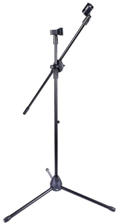 NN M2 to wysokiej jakości łamany statyw mikrofonowy z uchwytami umożliwiającymi zainstalowanie dwóch mikrofonów, który znakomicie sprawdza się podczas koncertów i występów scenicznych, a także różnego typu eventów wymagających nagłośnienia. Stojak w całości wykonany został ze stalowych rurek pomalowanych proszkowo na klasyczny, czarny kolor. Jego podstawę tworzą trzy rozkładane nóżki wyposażone w gumowe nakładki, dzięki którym tripod jest bardzo stabilny i nie ślizga się po podłożu. Wysokość kolumny pionowej statywu jest płynnie regulowana dzięki wykorzystaniu mechanizmu zaciskowego. Górna sekcja posiada możliwość regulacji wysokości wzdłuż sztycy pionowej. Dodatkowo odpowiednie ustawienie wysunięcia ramienia oraz jego kąta nachylenia pozwala na optymalne dostosowanie stojaka do indywidualnych potrzeb każdego użytkownika. Oprócz standardowego, rozporowego uchwytu na mikrofon, NN M2 wyposażony został w dodatkowy, motylkowy klips umożliwiający instalację na statywie drugiego mikrofonu. Jest to bardzo przydatne w niektórych sytuacjach, np. w studio, gdy dźwięk chcemy zbierać z kilku źródeł.
