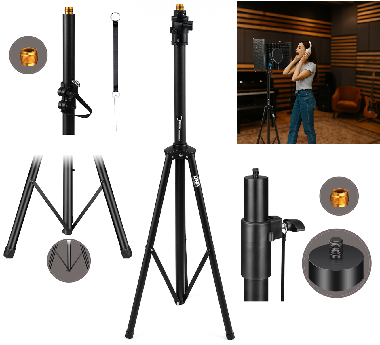 Stojak tripod statyw do mikrofonu kabiny akustycznej czarny pin zabezpieczający korekcja gwintu do 25 kg - DNA SCS1 | RATY | SALA ODSŁUCHOWA POZNAŃ