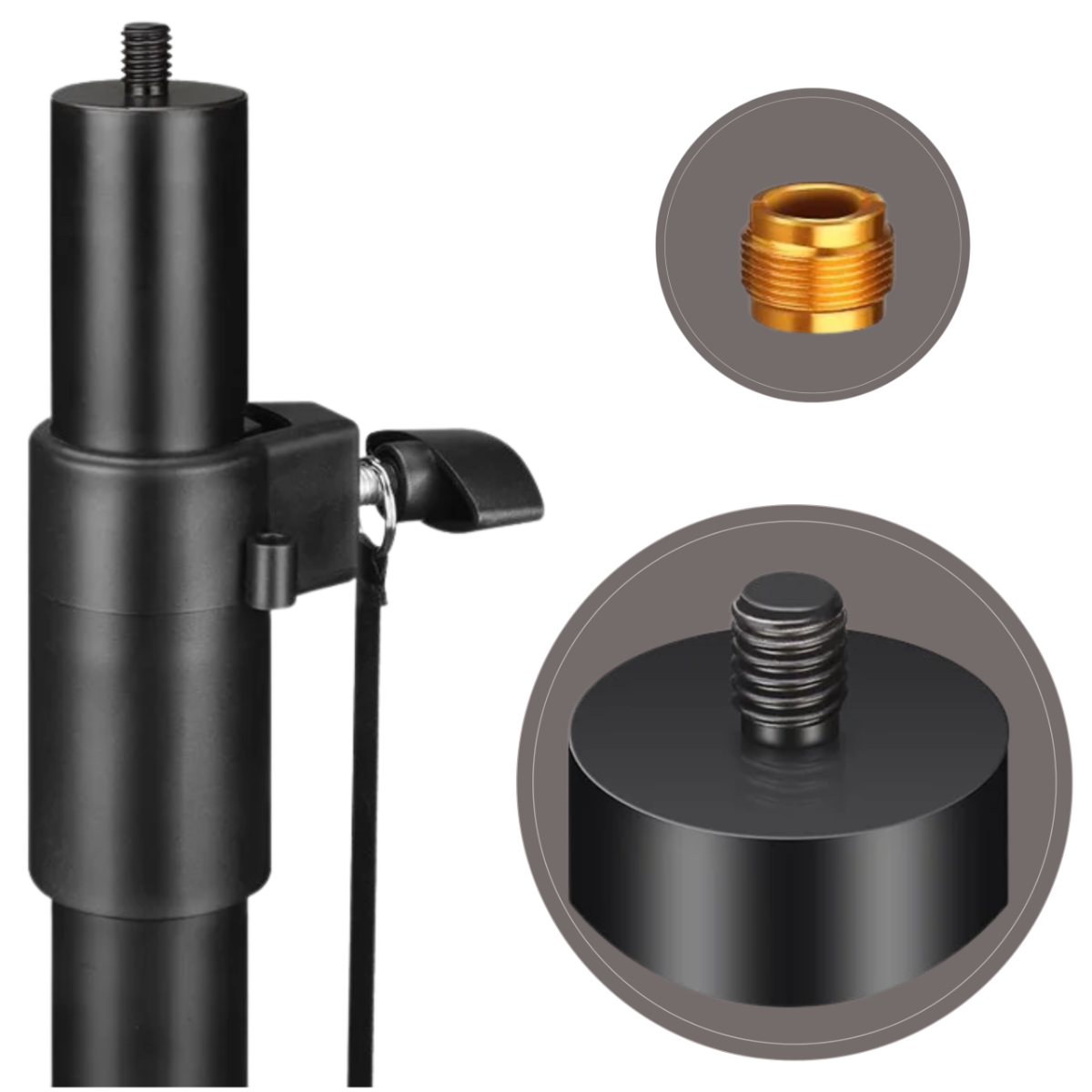 Średnice sztyc 25/28 mm i długość nóg 78 cm zapewniają równowagę – nawet przy maksymalnym rozstawie 104 cm *️⃣. Kompaktowe wymiary po złożeniu (113 x 8 x 8 cm) sprawiają, że łatwo go przetransportujesz i schowasz, gdy nie jest używany ✅. Zastosowany gwint 3/8" z korekcją na 5/8" pozwala na kompatybilność z większością dostępnych na rynku kabin i uchwytów mikrofonowych ☑️. To rozwiązanie, które zaspokoi Twoje potrzeby – niezależnie, czy nagrywasz w studiu, czy plenerze ✨.