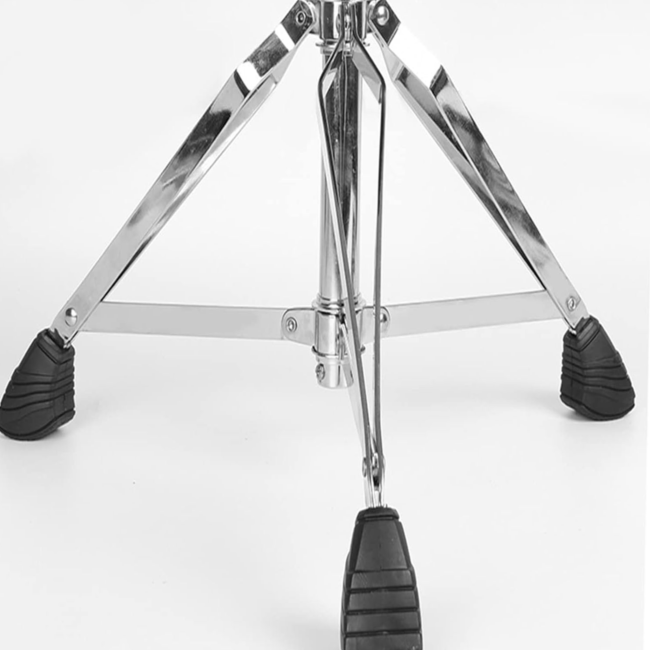 Taboret perkusyjny DNA THRONE 1 posiada wyjątkowe wsparcie siedziska w postaci w statywu ze stali chromowanej, co gwarantuje jego długotrwałe użytkowanie i solidność. ✅ Trzy antypoślizgowe gumowe nóżki zapewniają stabilność niezależnie od rodzaju podłoża. ✨ Od teraz już nie musisz martwić się o ślizganie się podczas dynamicznych występów! ⚡ Zaufaj wytrzymałej konstrukcji i skup się na swojej pasji. ✔️