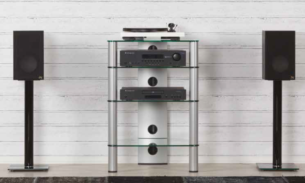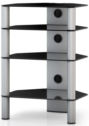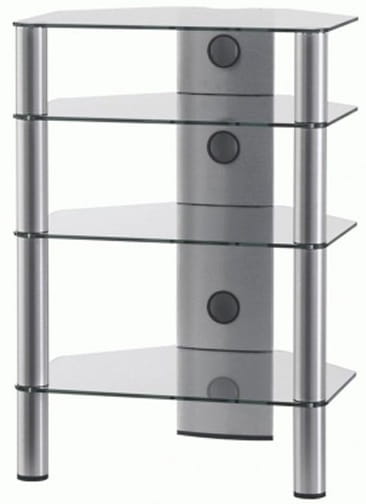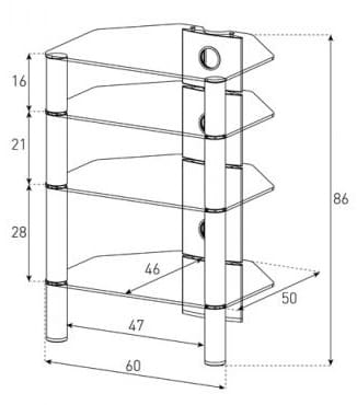 Sonorous RX2140 to stolik HI-FI z czterema pólkami, konstrukcja wykonana z wysokiej jakości aluminium o kształtach okrągłych i owalnych, półki wykonane z hartowanego szkła z polerowanymi krawędziami o szerokości 60 cm. Stolik wyposażony w system zarządzania kablami.