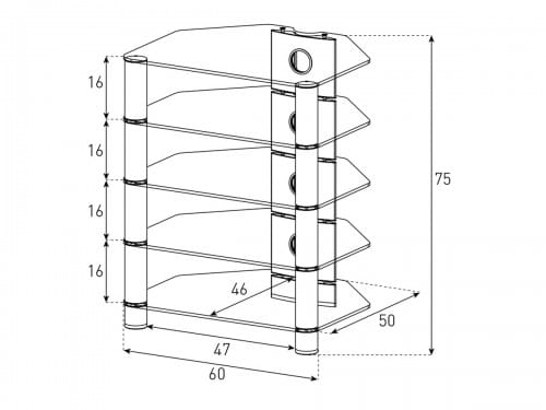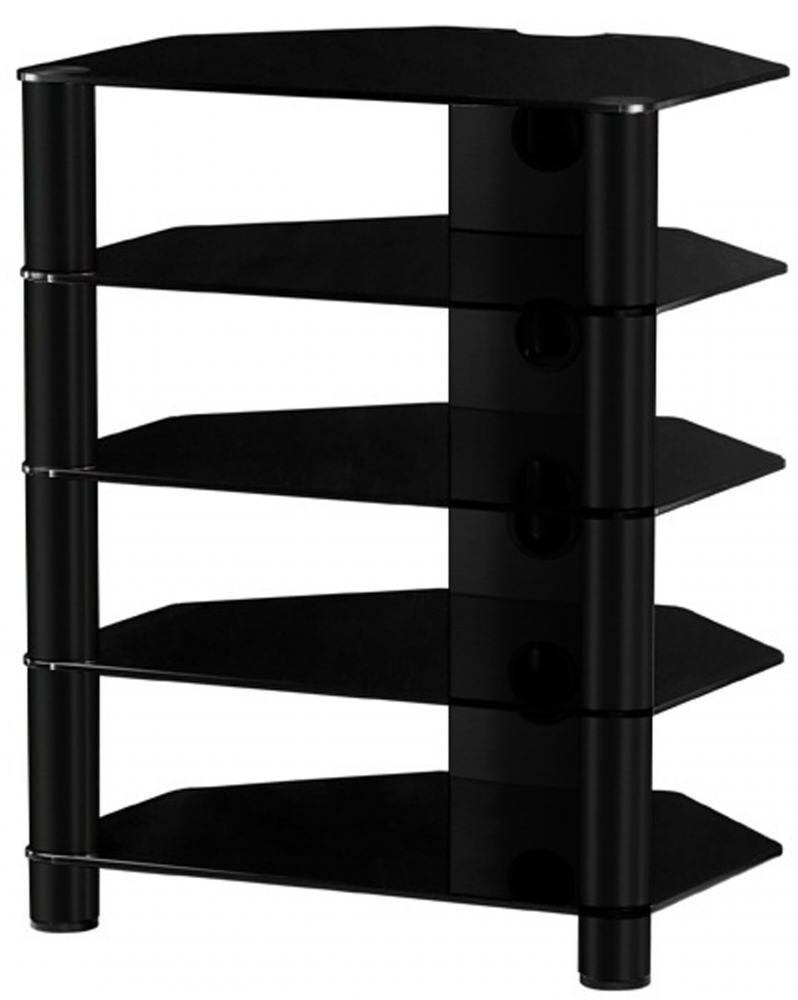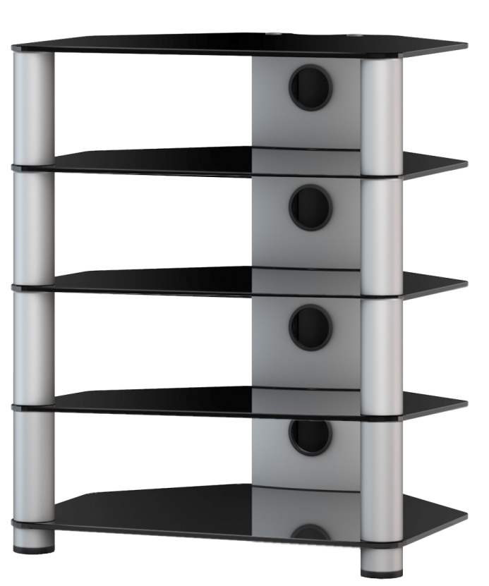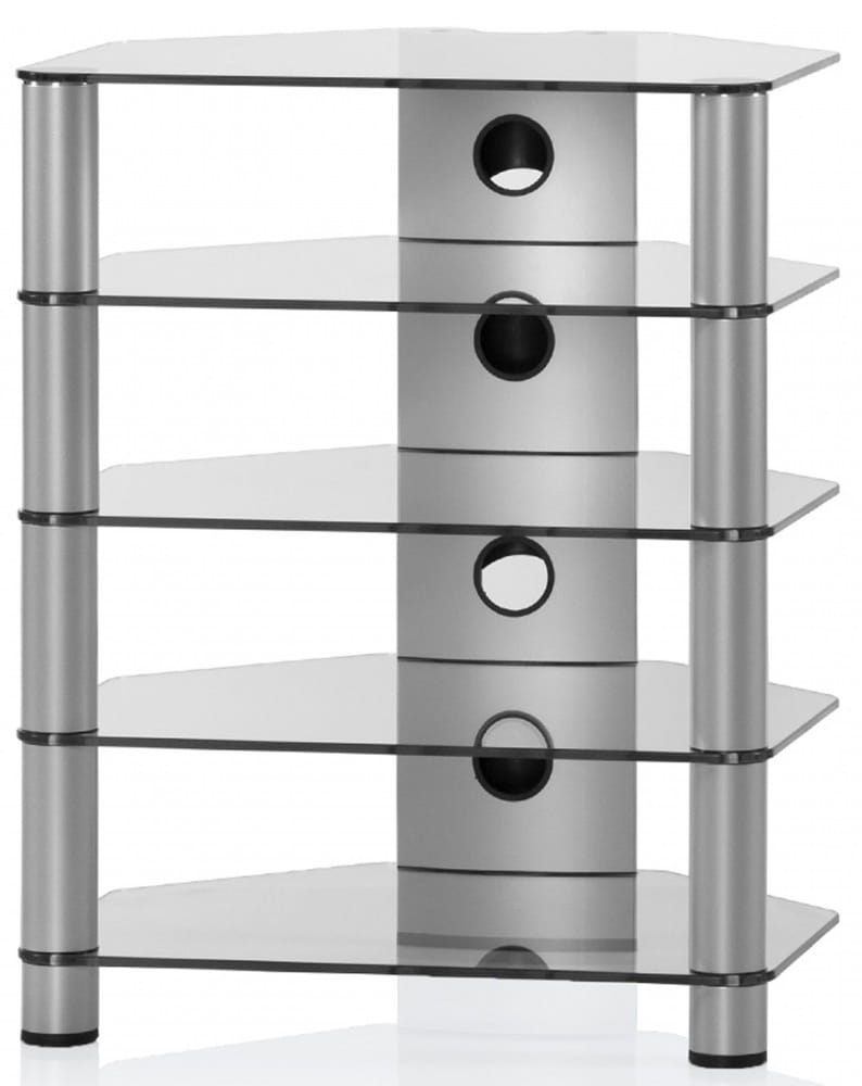Sonorous RX2150 to stolik HI-FI z pięcioma pólkami, konstrukcja wykonana z wysokiej jakości aluminium o kształtach okrągłych i owalnych, półki wykonane z hartowanego szkła z polerowanymi krawędziami o szerokości 60 cm. Stolik wyposażony w system zarządzania kablami.