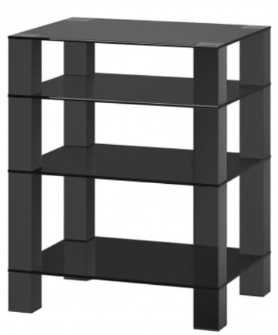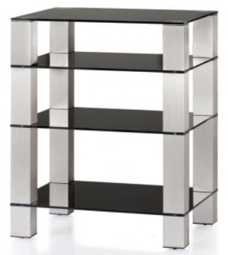 - to stolik HI-FI z czterema pólkami, konstrukcja wykonana z wysokiej jakości aluminium o kształtach kwadratowych, półki wykonane z hartowanego szkła z polerowanymi krawędziami o szerokości 64 cm