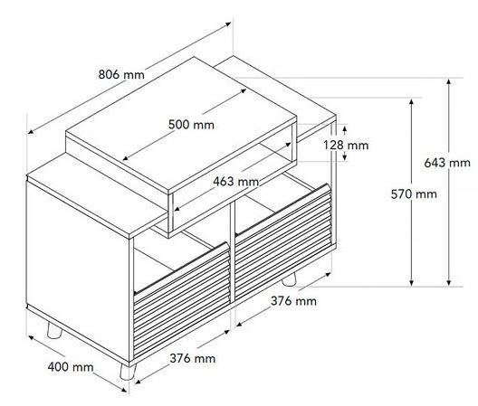 Oslo 800 posiada dedykowaną przestrzeń 46 cm pod gramofonem, idealną do umieszczenia wzmacniacza lub innego sprzętu audio. Górna powierzchnia została zaprojektowana tak, aby pomieścić gramofon winylowy, dzięki czemu ten wszechstronny mebel jest idealnym uzupełnieniem.