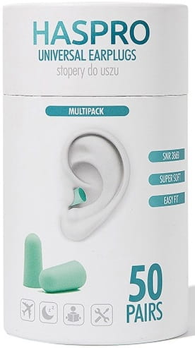 Haspro Tube50 to nowoczesne opakowanie zbiorcze w formie tuby zawierające 50 par stoperów do uszu jednorazowego użytku wykonanych z komfortowej i niezwykle delikatnej dla ucha pianki poliuretanowej, która w bardzo łatwy sposób dopasowuje się do każdego ucha w niespełna minutę.