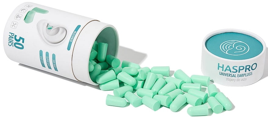 Haspro Tube50 to nowoczesne opakowanie zbiorcze w formie tuby zawierające 50 par stoperów do uszu jednorazowego użytku wykonanych z komfortowej i niezwykle delikatnej dla ucha pianki poliuretanowej, która w bardzo łatwy sposób dopasowuje się do każdego ucha w niespełna minutę.