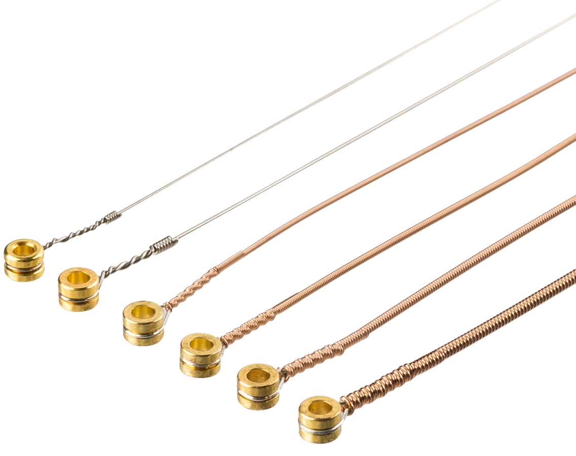| Materiał | Inner wire: high carbon hexagonal steel core Outer wire: phosphor bronze winding Process: PU polymer film |