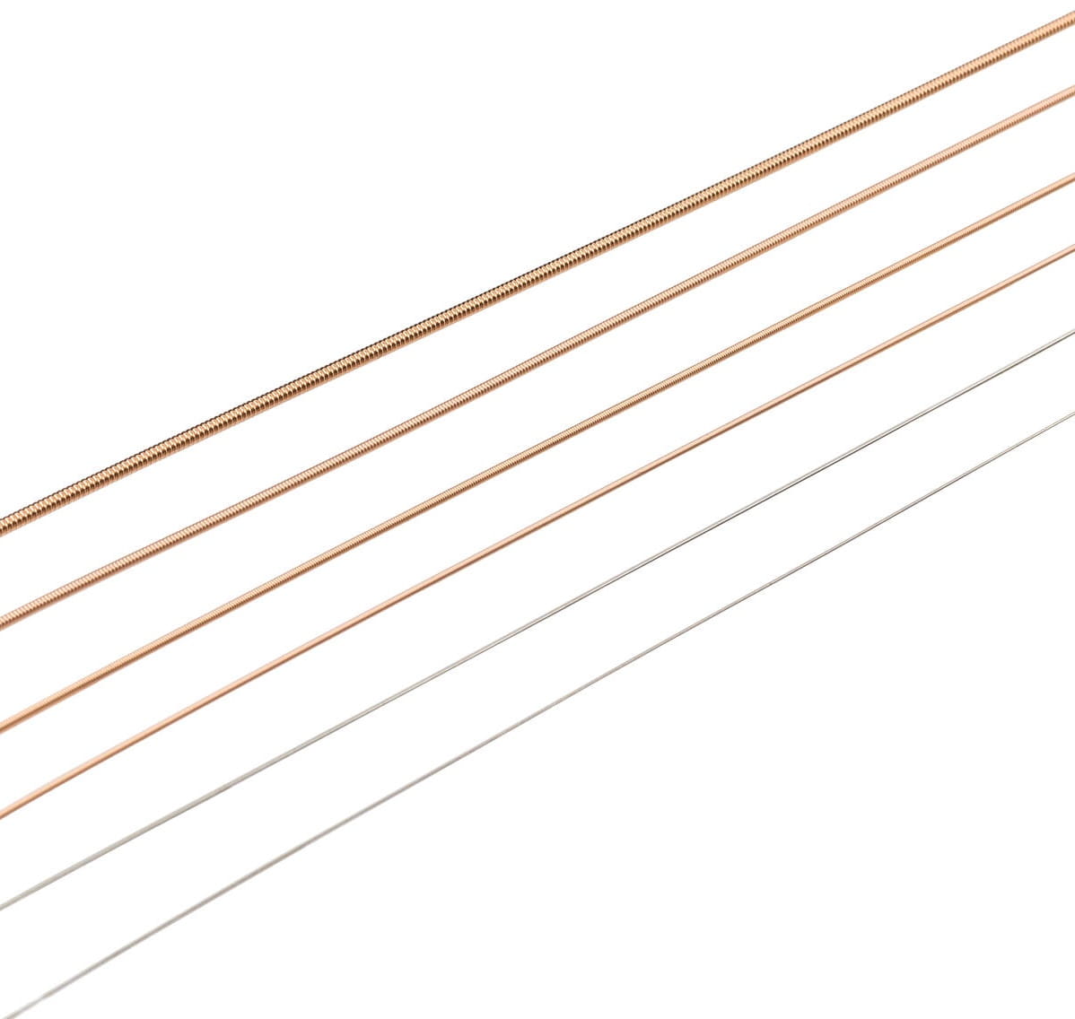 | Materiał | Inner wire: high carbon hexagonal steel core Outer wire: phosphor bronze winding Process: PVD ion coating |