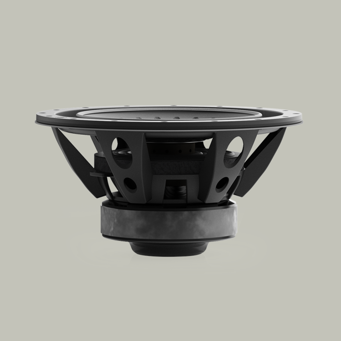 - 1 x 12-calowy (30 cm) przetwornik aluminiowo-magnezowy powlekany ceramiką (C-CAM) o dużym wychyleniu z technologią Rigid Surface Technology II (RST II)