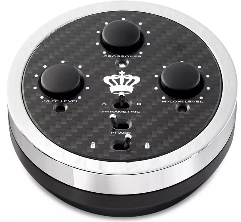 Poniżej znajdują się trzy urocze metalowe przełączniki obsługujące główne funkcje podczas konfiguracji. Wyłącznik pilota znajduje się na dole. Jest na uboczu i pozostaje włączony po włączeniu i użyciu podczas konfiguracji bez zamartwiania się o przypadkowe wyłączenie. Pośrodku znajduje się kontrola fazy. Jest ona używana tylko na początku, do określenia prawidłowego 0 lub 180 stopni fazy. Dostęp do przycisku Dual Parametric EQ, z A i B, pozwala na uzyskanie wyrównanego, najgłębszego basu, a z drugiej strony pasma na precyzyjne dostrojenie zwrotnicy. Zapewnia to idealne połączenie subwoofera z głównymi głośnikami, a wszelkie pozostałości buczenia i rezonansów generowanych przez pomieszczenie można delikatnie usunąć.