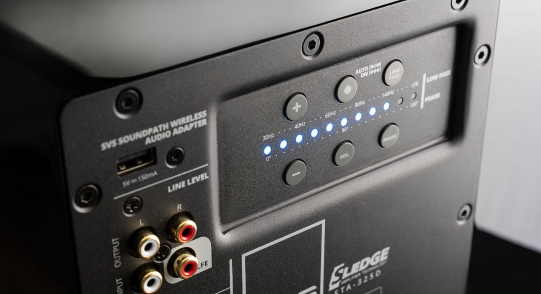 Przyciski sterujące pozwalające na precyzyjne i wolne od szumów zmiany ustawień. Zestaw gniazd połączeniowych ułatwia integrację subwoofera z każdym systemem audio i systemem kina domowego.