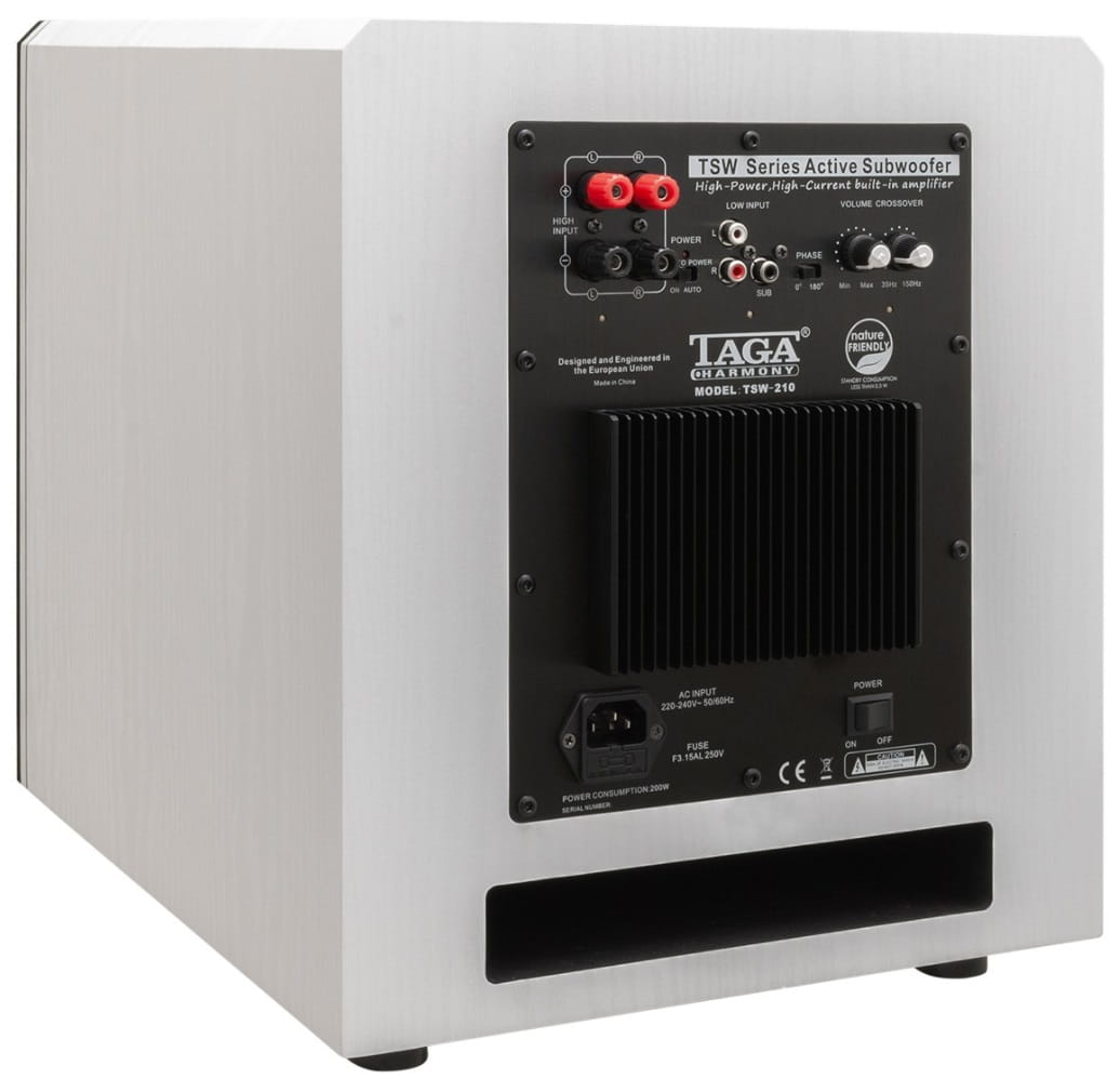 Nowy przetwornik niskotonowy może pracować w wyższej amplitudzie częstotliwości i może szybciej reagować na wszelkie zmiany w strukturze sygnału audio. Wymienny kabel zasilania typu IEC, by zapewnić lepsze filtrowanie i stabilność zasilania. Daje to również możliwość upgrade’u systemu o kabel jakości audiofilskiej w dowolnym momencie. Subwoofery TSW dostarczają bardzo mocny, głęboki bas z oszałamiającą definicją, lokalizacją i dynamiką, które dotąd nigdy nie były dostępne na tym poziomie cenowym! Nasze subwoofery są absolutnie najlepszym zakupem w swojej klasie!