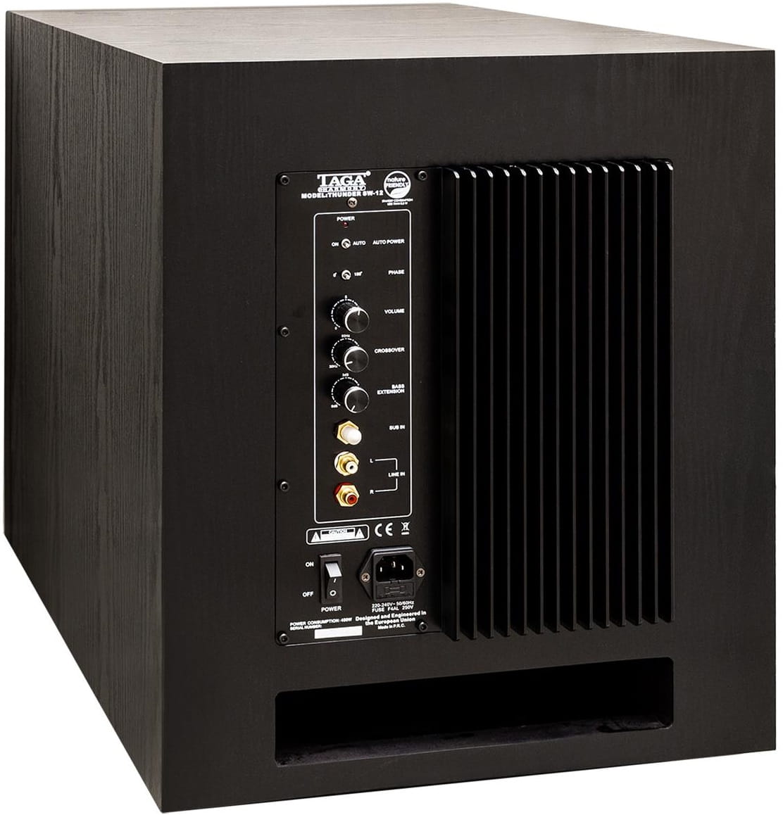 THCA - Taga High Current Amplifier (wysokoprądowy wzmacniacz) zapewnia potężną czystą moc. Powiększony, wysokiej wydajności radiator zapewnia szybsze odprowadzanie ciepła, zwiększając efektywność i zasięg wzmacniacza. Wzmacniacz wykorzystuje bardzo dobrze zaprojektowane rozmieszczenie układów i wysokiej jakości komponenty w celu zapewnienia trwałości i najwyższej jakości basu. Zintegrowany limiter utrzymuje najlepszą wydajność i bezpieczną pracę wzmacniacza i przetwornika niskotonowego nawet przy bardzo wysokich poziomach głośności. Wysokiej jakości, audiofilski, cichy transformator toroidalny o mocy 450 watów zapewnia stabilną energię dostępną na wszystkich poziomach mocy.
