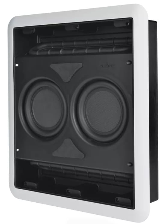 - Dyskretna instalacja: subwoofery SC-IW (In-Wall) montowane są bezpośrednio w standardowych ścianach o konstrukcji 2x4, co pozwala na ich niemal niewidoczną integrację z wnętrzem