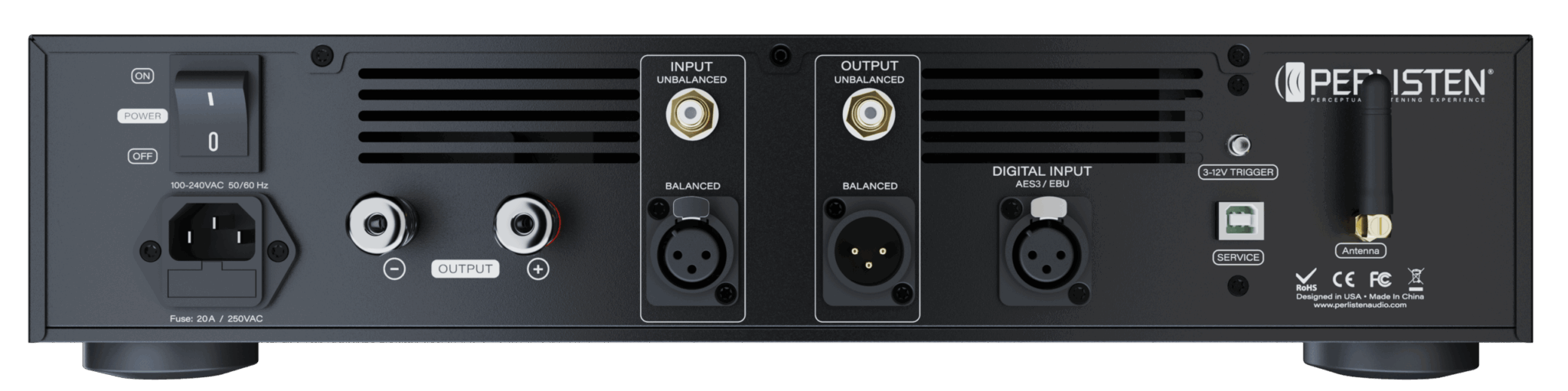 - Wejścia/wyjścia: XLR, RCA, AES/2