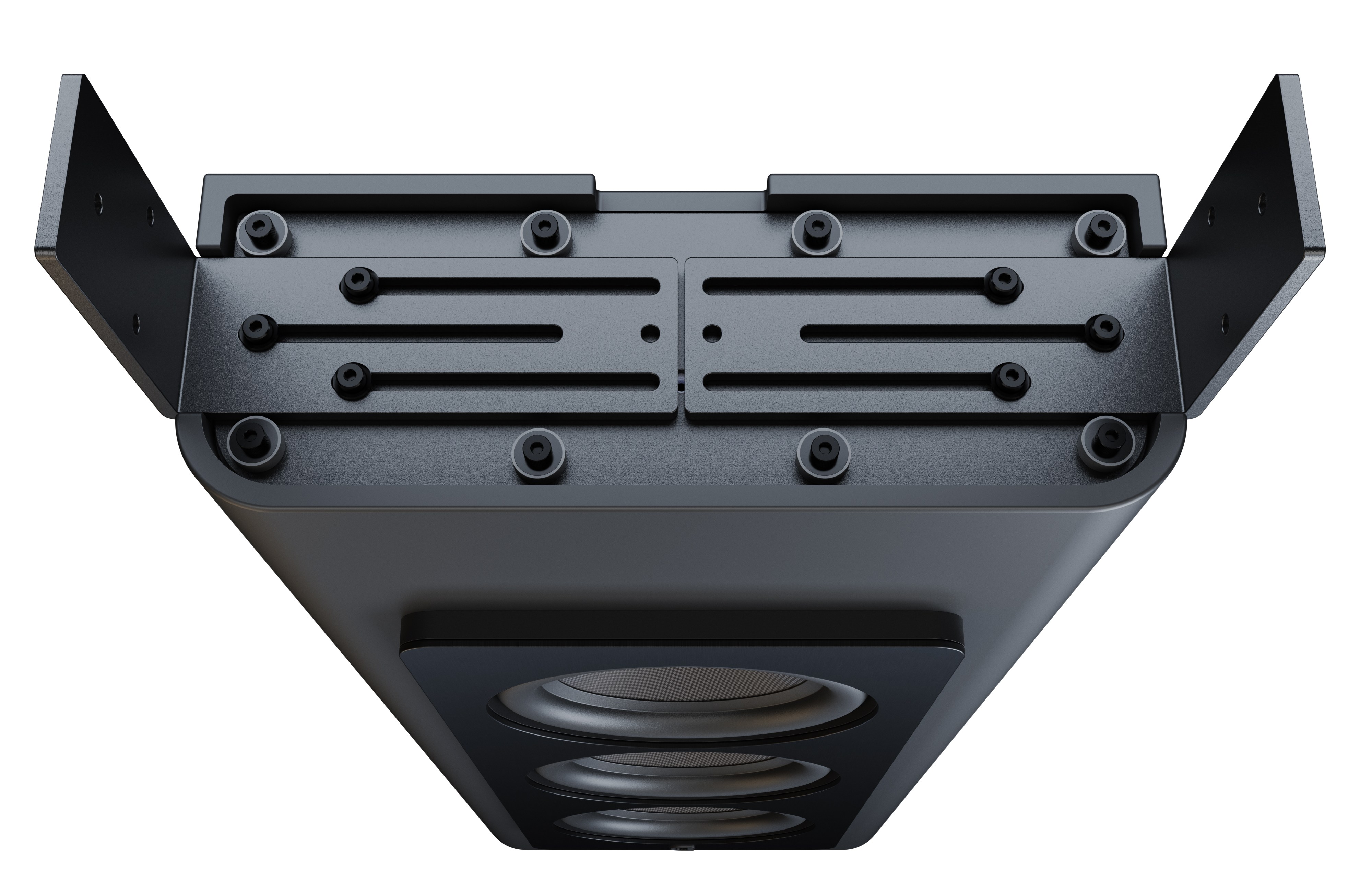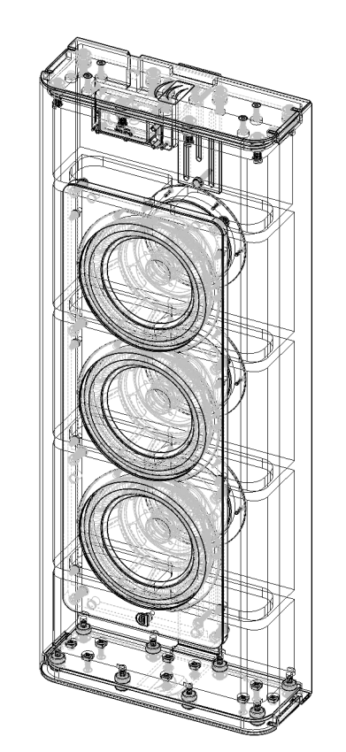 Perlisten D3is to kompaktowy subwoofer stworzony do instalacji tam, gdzie liczy się oszczędność miejsca i precyzyjna kontrola basu. Obudowa z wytłaczanego aluminium mieści trzy 215-milimetrowe (8,5") przetworniki z karbonową membraną i liniowym wychyleniem ±16,9 mm. Konstrukcja została przygotowana z myślą o montażu na ścianie lub wewnątrz ściany, z zastosowaniem dedykowanych uchwytów i elementów izolacyjnych ograniczających przenoszenie drgań do struktury budynku.