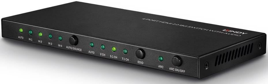 Switch (Przełącznik) 4-portowy HDMI 4K UHD z audio, portem optycznym i analogowym + pilot IR - Lindy 38249